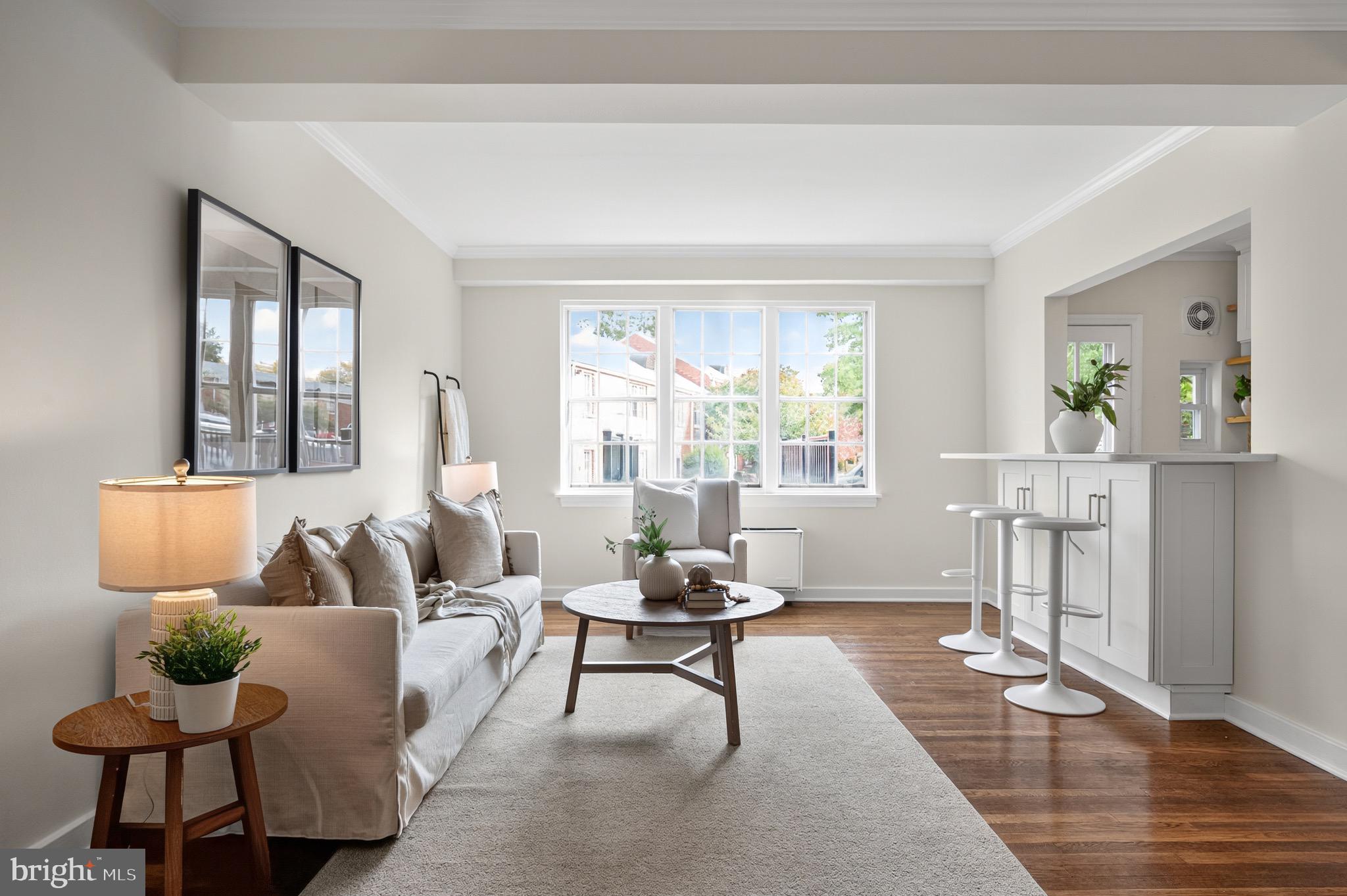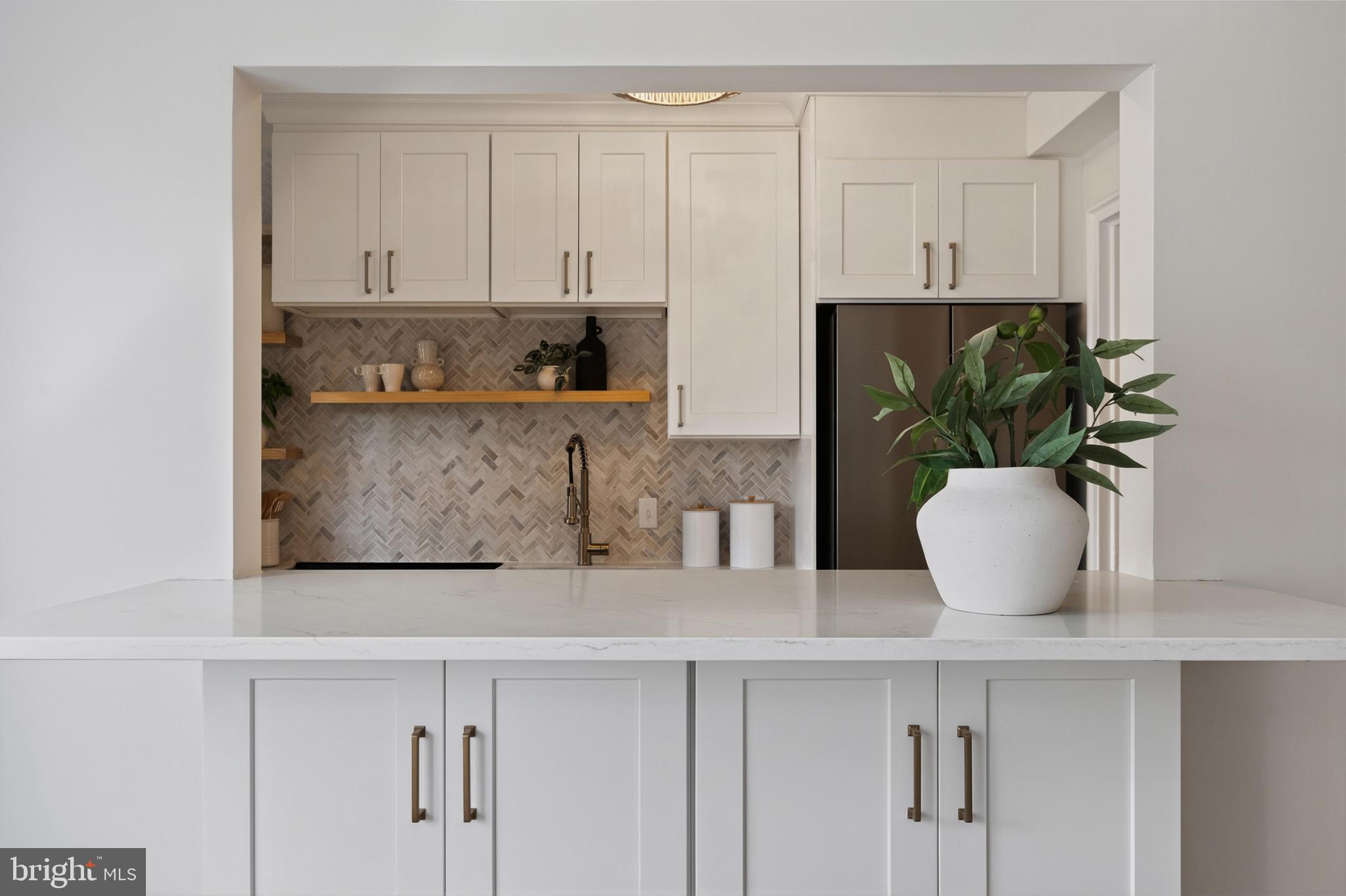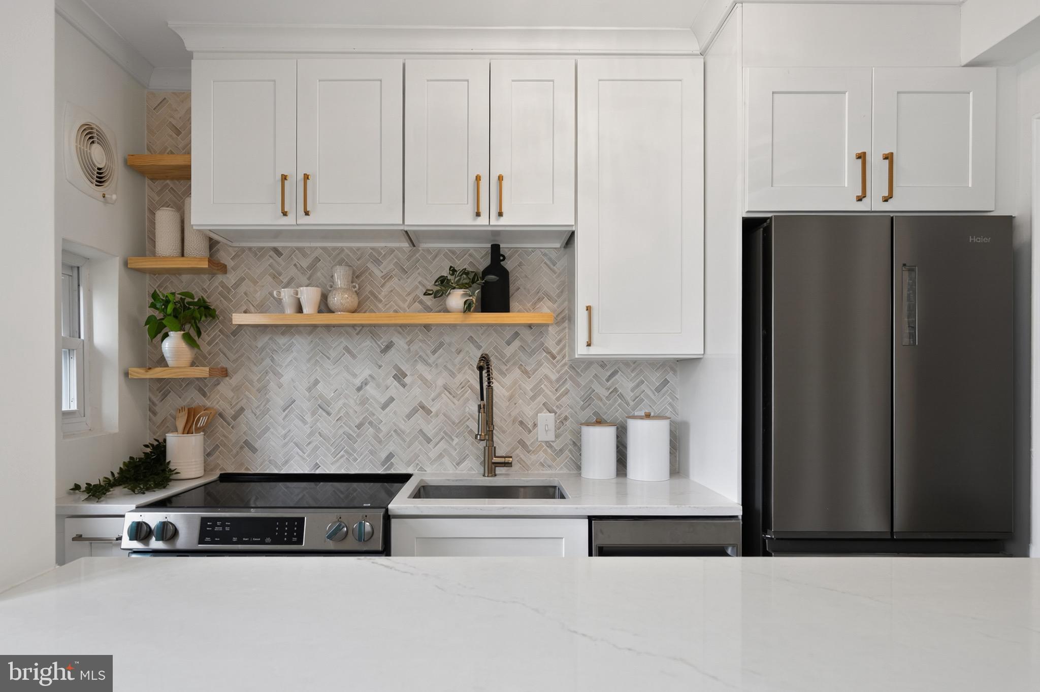 Don't miss this beautiful, newly renovated first-floor condo in the heart of the popular Potomac Yards and Del Ray neighborhoods! Thoughtfully renovated with upscale finishes, this 970 SF condo, the largest 2 bedroom in the community, is light-filled and features a mix of traditional styling and modern upgrades. The unit boasts a new kitchen with GE & Haier stainless steel appliances, quartz countertops, new cabinetry, open shelving, a stylish backsplash, and ample storage. Don't miss the open-concept breakfast bar with room for three or more barstools. The beautiful bathroom features upgraded fixtures, new tile, and lighting. The two large bedrooms feature new lighting, separately controlled heating and air, ample closet space and natural light. You'll also find refinished hardwood floors, new gorgeous door hardware, light-filtering blinds, ample parking (both from available street and a private lot with a permit), and the community laundry center steps away. The HOA has a committee to review in-unit laundry additions, too! This friendly, charming, and green community is in a PRIME Alexandria location: less than 2 miles to Reagan National Airport, Potomac Yard Center and Metro Station, Crystal City, the 36A/B Dash Bus stop, and two miles from Old Town! Don't wait, schedule your tour today!