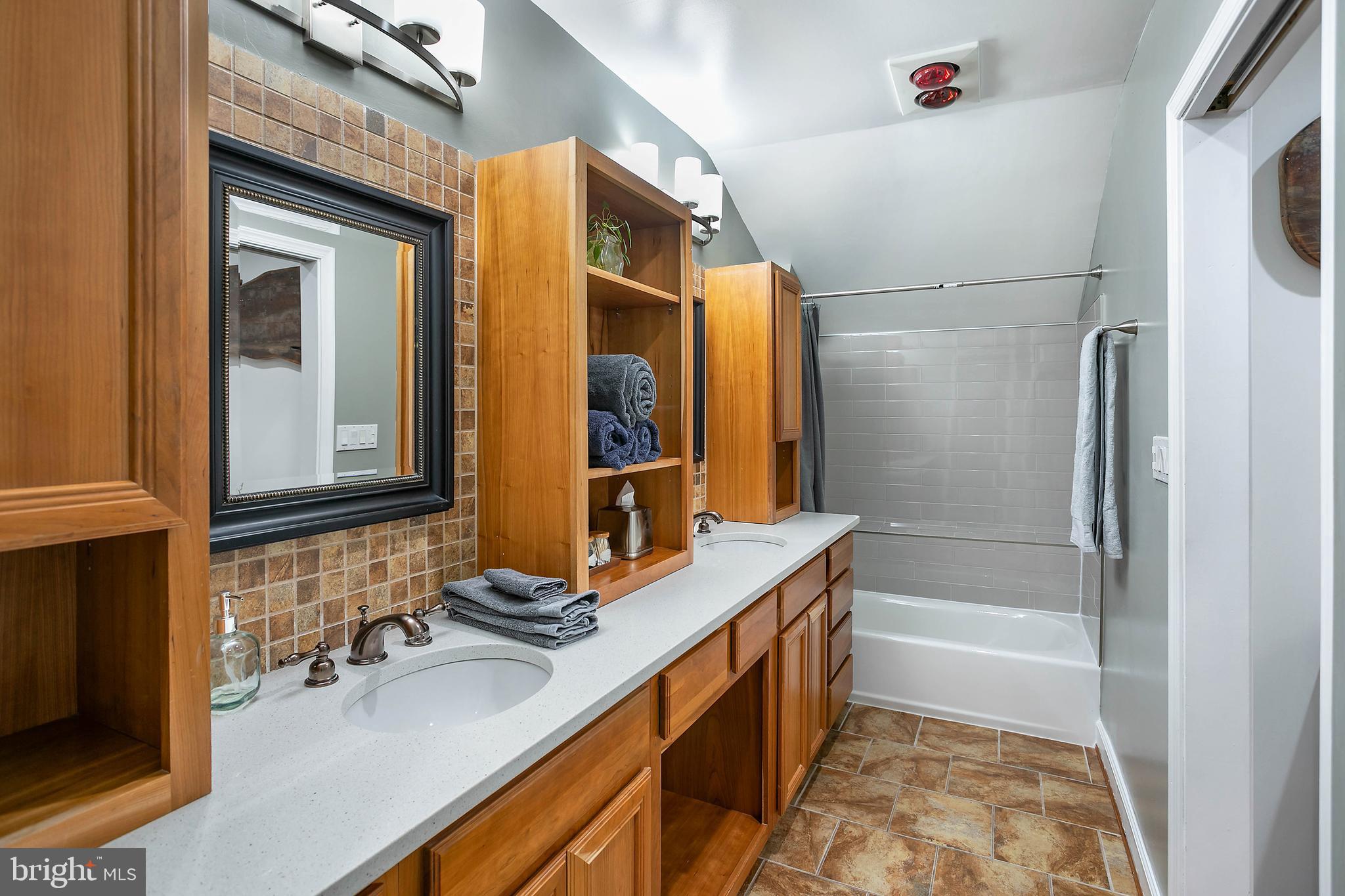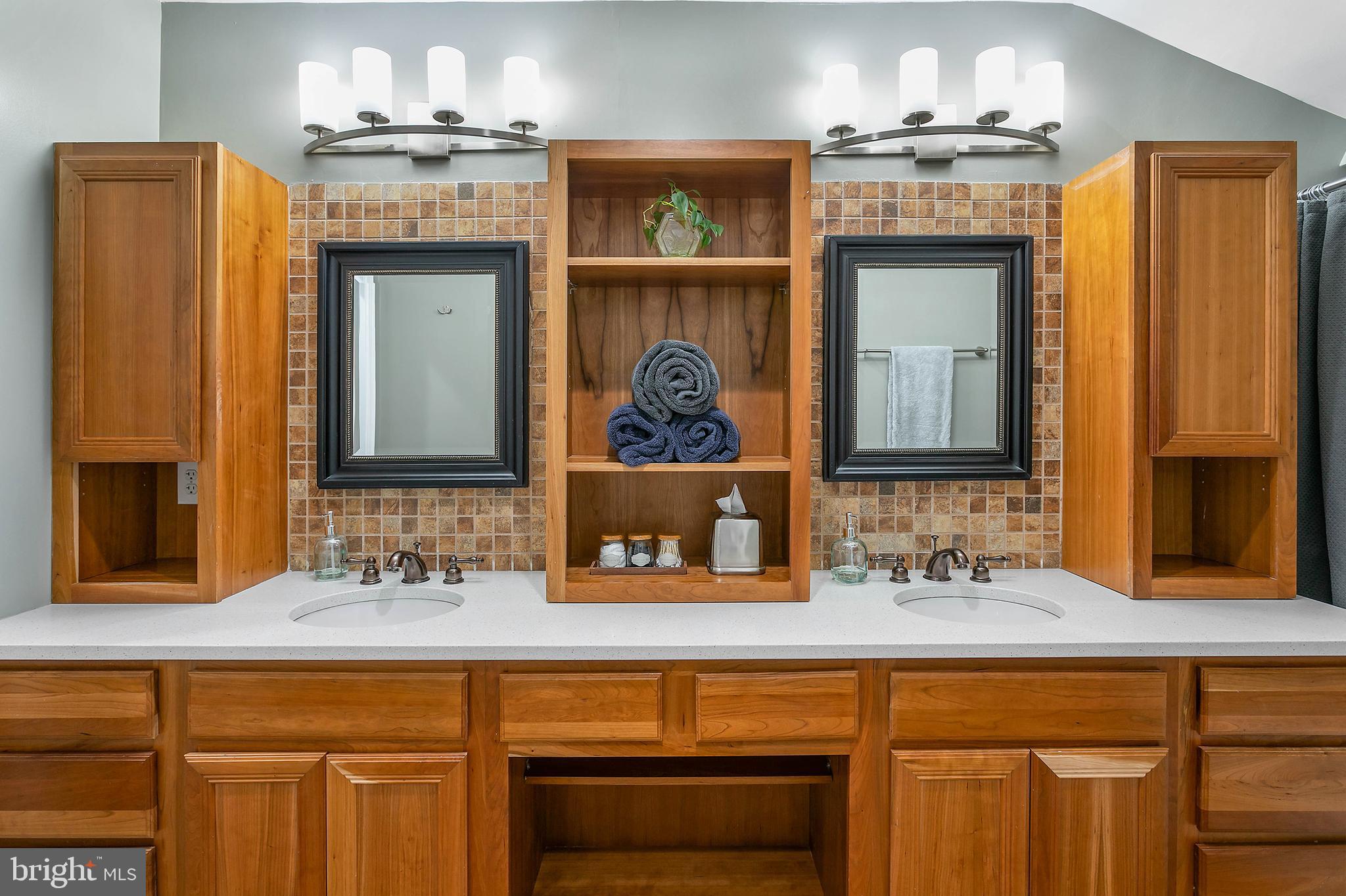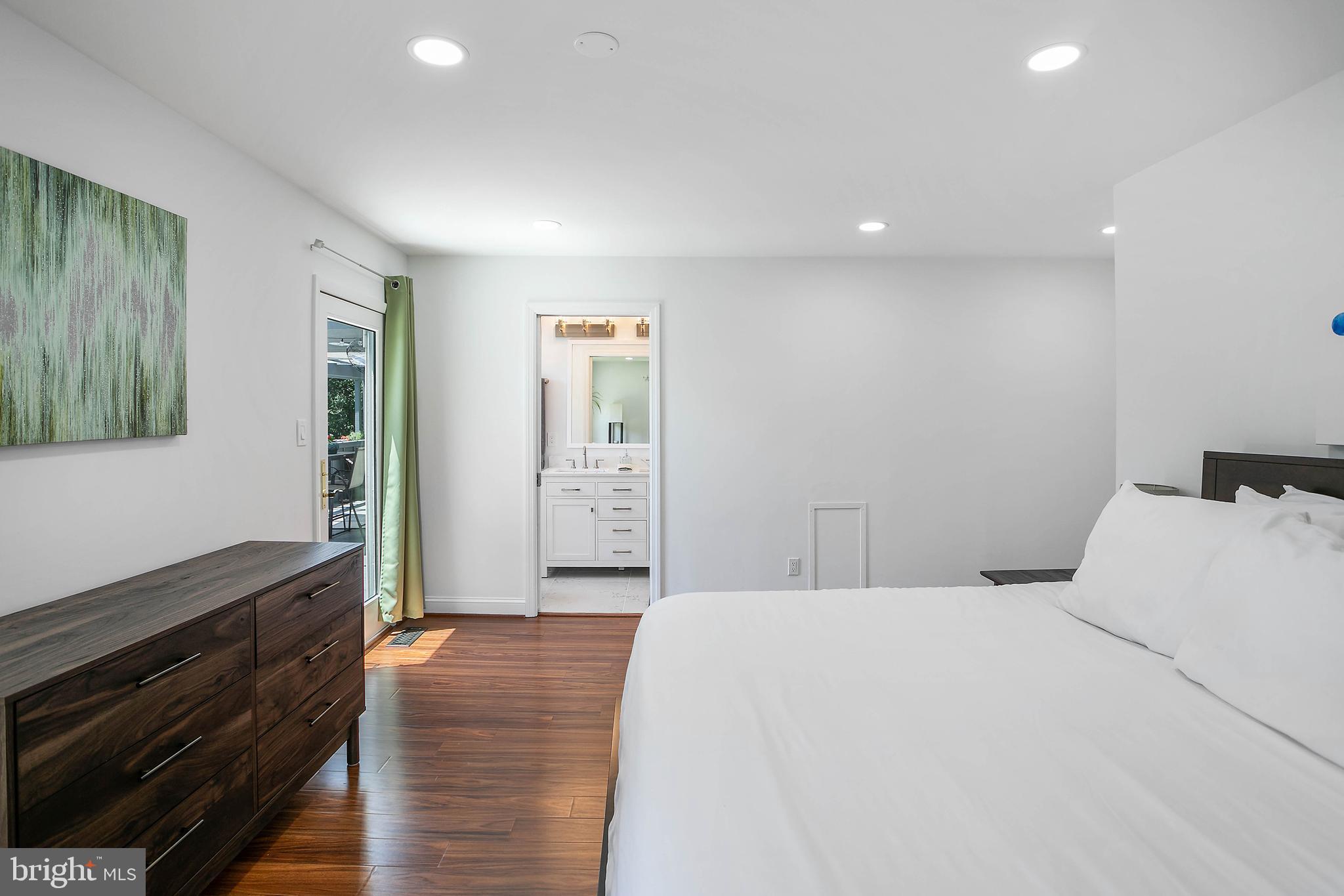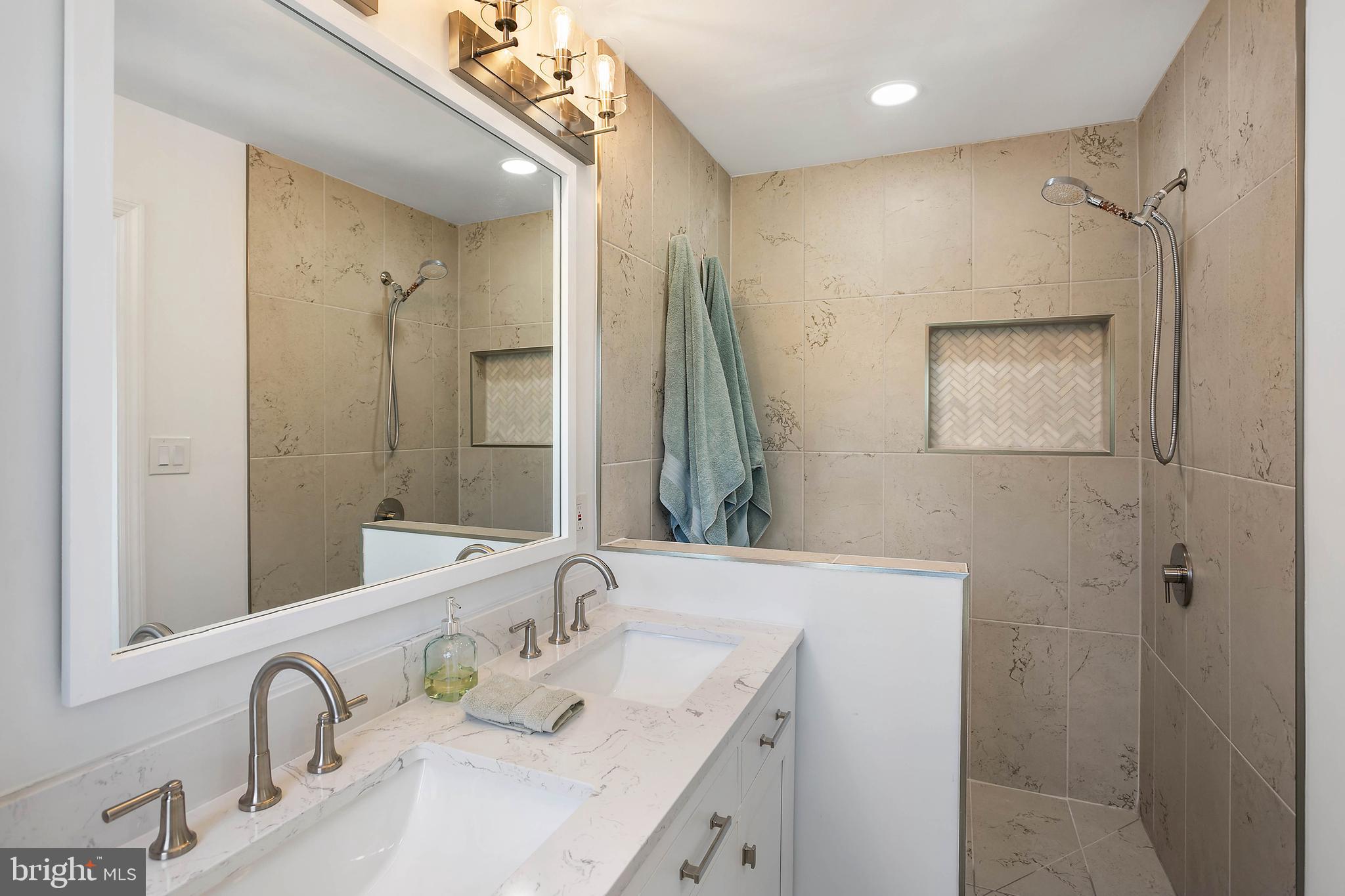 The brand new primary suite features a luxurious en suite bathroom and huge walk-in closet. The kitchen was upgraded in 2024 and features new appliances, enormous new quartz counter tops and back splash including an expansive island that can seat up to six, separate coffee bar, and cozy wood burning fireplace.