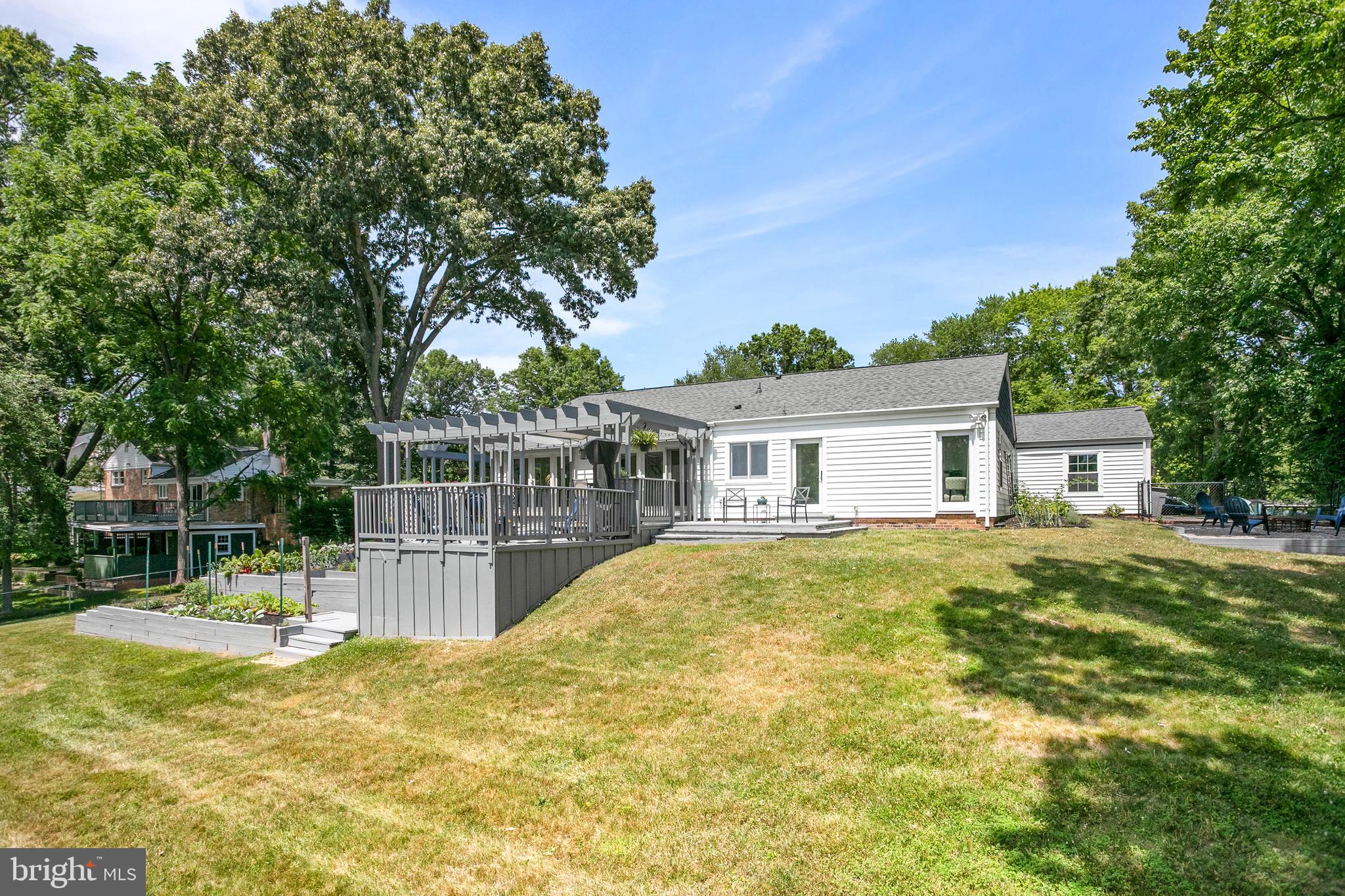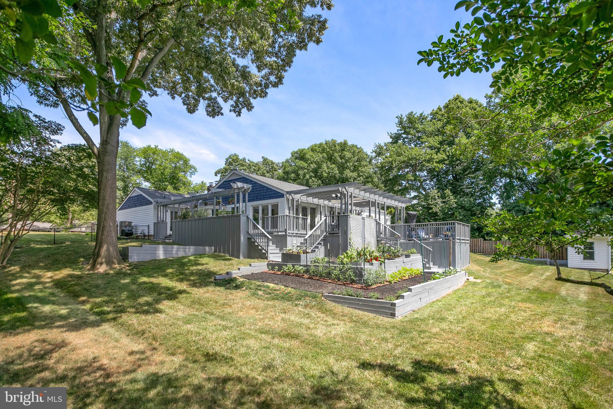 Welcome to your new home in the highly sought-after Hollindale subdivision! This stunning one-level residence offers 4 spacious bedrooms + den/office space, and 4 beautifully updated bathrooms, encompassing 3,200+ square feet of living space. The home is an entertainer's dream with large gathering spaces inside and outside. The 1000+ sqft back deck features several seating and dining areas, views of green conservancy space (all the way to MD!), lovely planter boxes built into the deck that host many perennial herbs and flowers, and a two-tiered vegetable garden that is in peak bloom for Summer! Backing up to a county-protected nature conservancy space, this property offers privacy and a serene natural setting just minutes from Old Town and downtown DC!