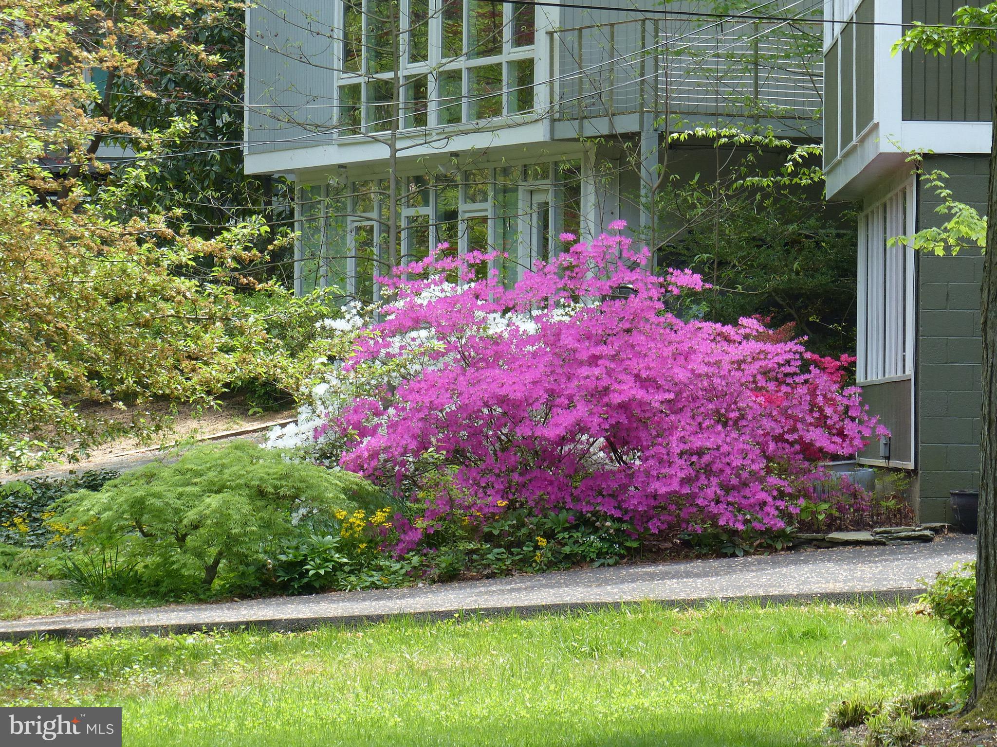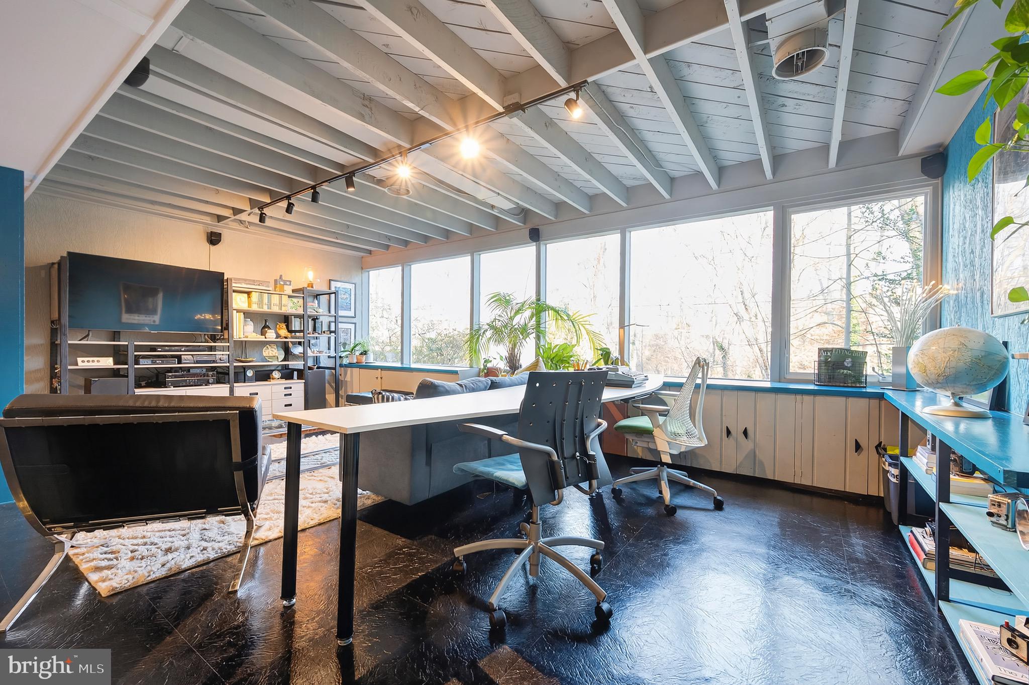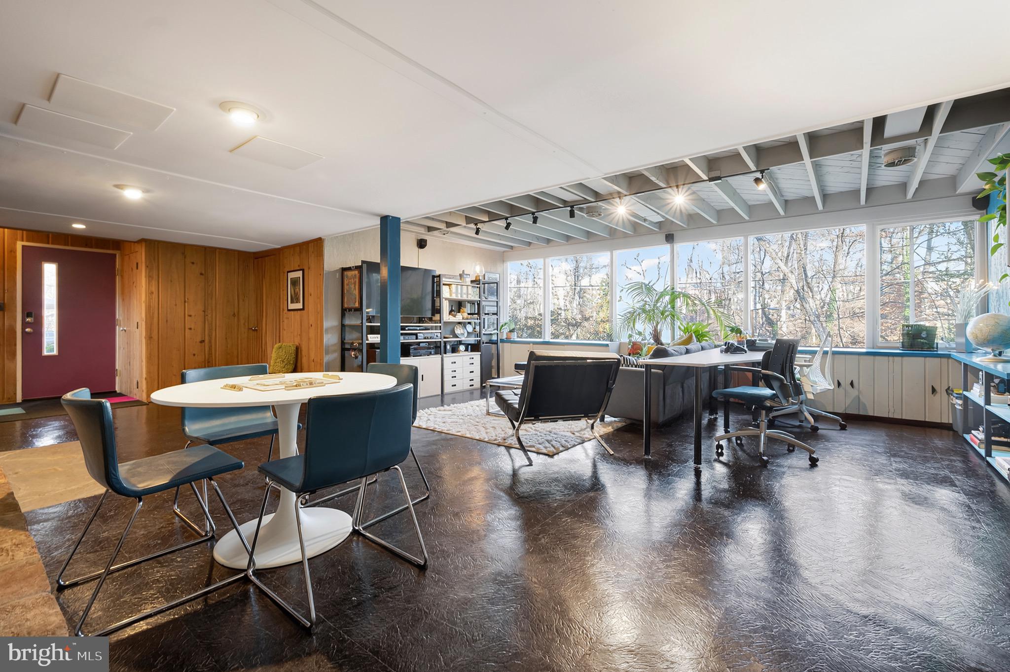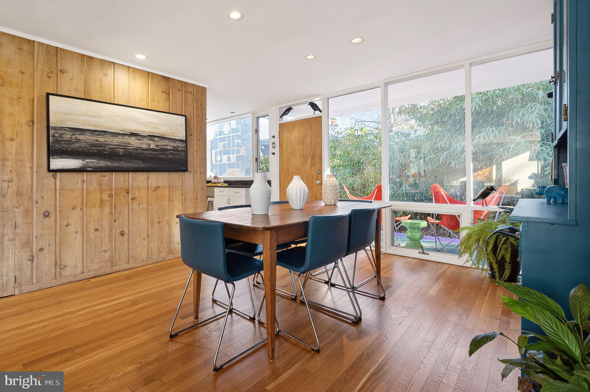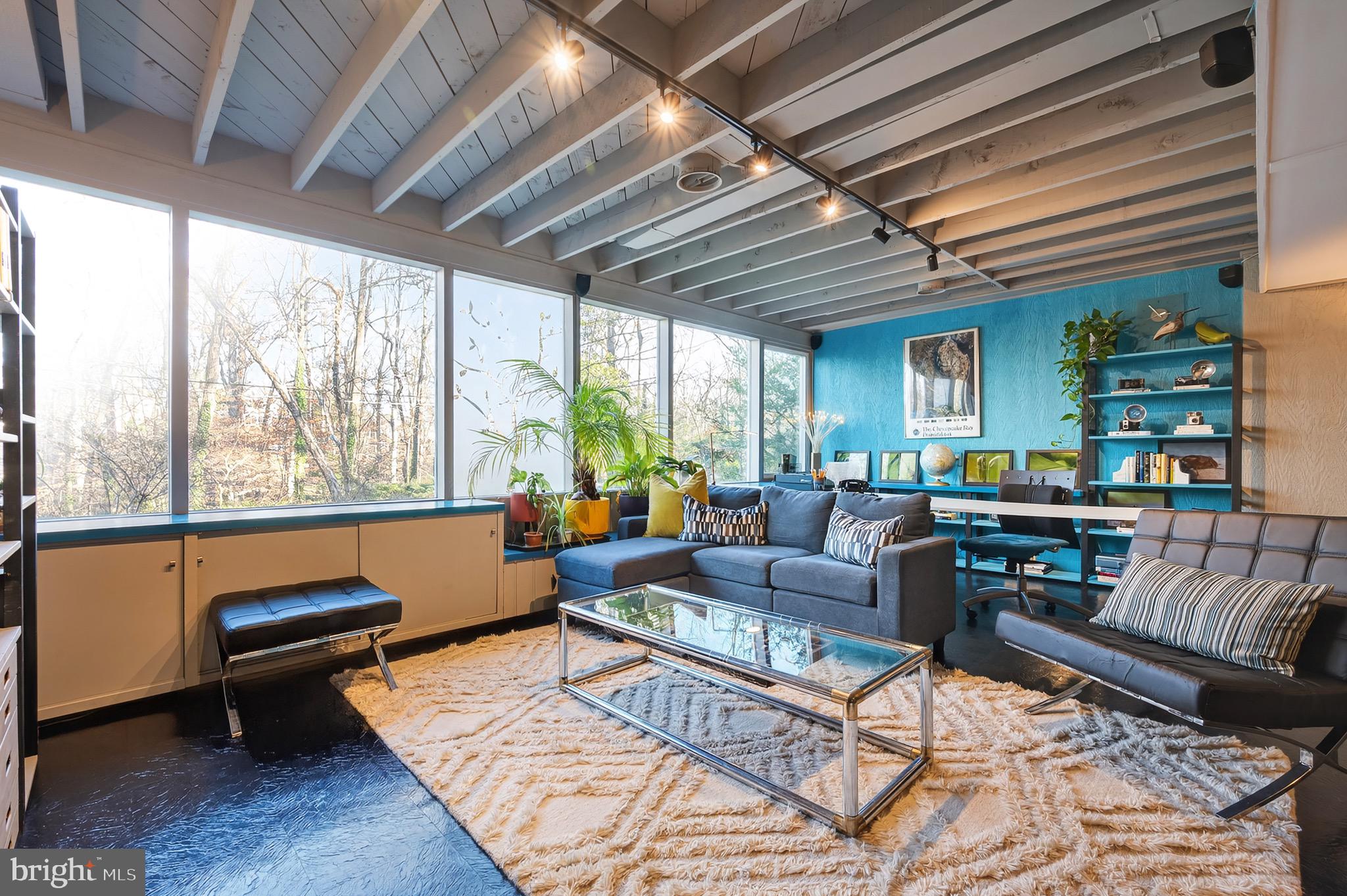 Two-story Mid-Century Modern home in sought-after Hollin Hills community, designed by renowned architect Charles Goodman. Nestled on a .36-acre lot, the home is perfectly positioned for privacy and connection to nature, with treetop views of parkland. Landscaping includes pollinator gardens with extensive use of native plants.