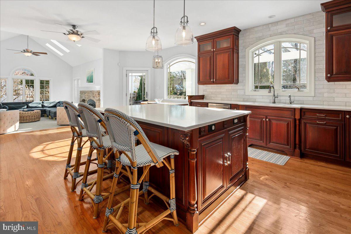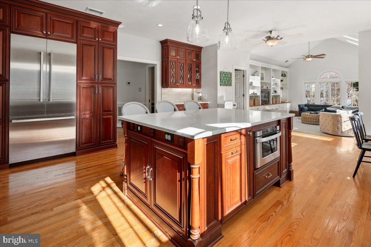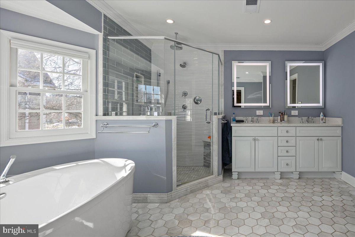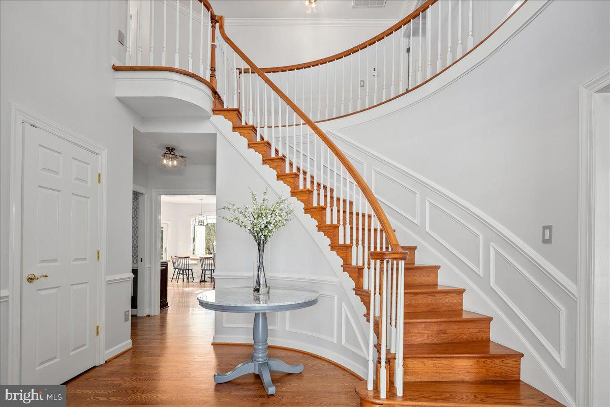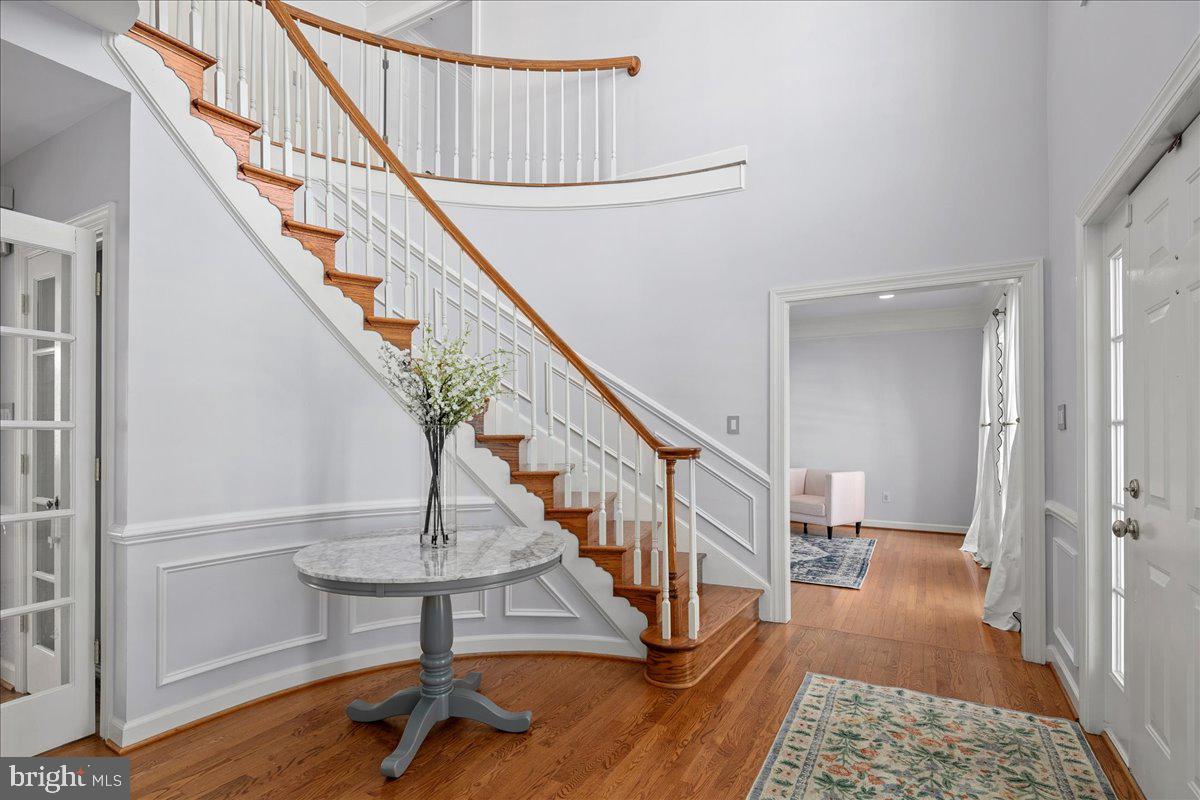 Incredibly spacious and updated 5,000 sq ft Colonial located in highly desirable Manors at Mount Vernon neighborhood. Rarely available "Potomac" Model which is one of the largest in the neighborhood! Main level features classic front portico leading to dramatic two story entry foyer with curved staircase, private office with custom built-ins, plantation shutters, and glass doors. Recently refreshed Chef's Kitchen that leads to breakfast area and beautiful family room scene featuring cathedral ceiling with skylights, stacked stone gas fireplace, and extensive custom built-ins. Large dining room features two bay windows, extensive trim detail and Serena and Lily grass cloth wallpaper. Dining room separated from the front living room by knee walls and decorative columns. Pristine hardwoods throughout main and upper level and beautiful custom lighting throughout. Upper level features 4 bedrooms and rarely found 3 full baths including spa like primary suite with recently renovated full bath and walk in closet with custom built-ins. Lower level features a large rec room with high end custom built bar, guest room, full bath, and additional large finished room with tons of closet space ideal for a multitude of uses including additional guest room, play room, exercise room, home theatre, hobby room, etc! Extensive exterior improvements including blue stone patio with fire-pit and knee wall with custom pergola above, bluestone front walk, and quaint bluestone patio in front yard. More than adequate parking provided by a 2 car garage and extensive driveway space. Recent improvements include: Interior repaint, Kitchen counters, backsplash, lighting, hardware, paint (2023), Dining room wallpaper and window treatments (2023), Living room curtains (2023), Garage door opener (2023), Upper level bedroom wallpaper in two rooms (2023), Basement finishing adding additional flex room, carpet, toilet, LVP flooring (2022), Office French doors (2022), hardwoods added in upper level (2021). Rare opportunity for a turn key home in a desirable community with sidewalk lined streets and a short walk to nearby Stratford Landing School and a short drive to Old Town Alexandria and all Washington DC has to offer!