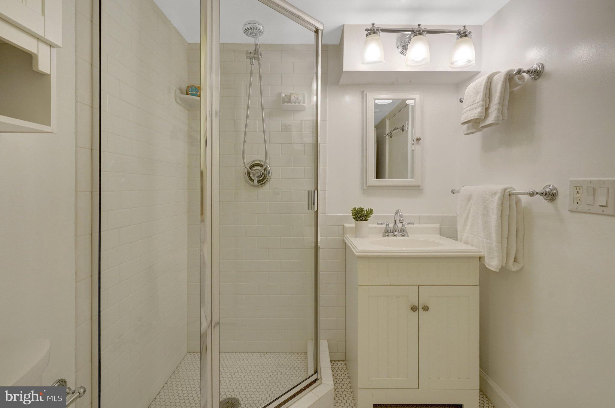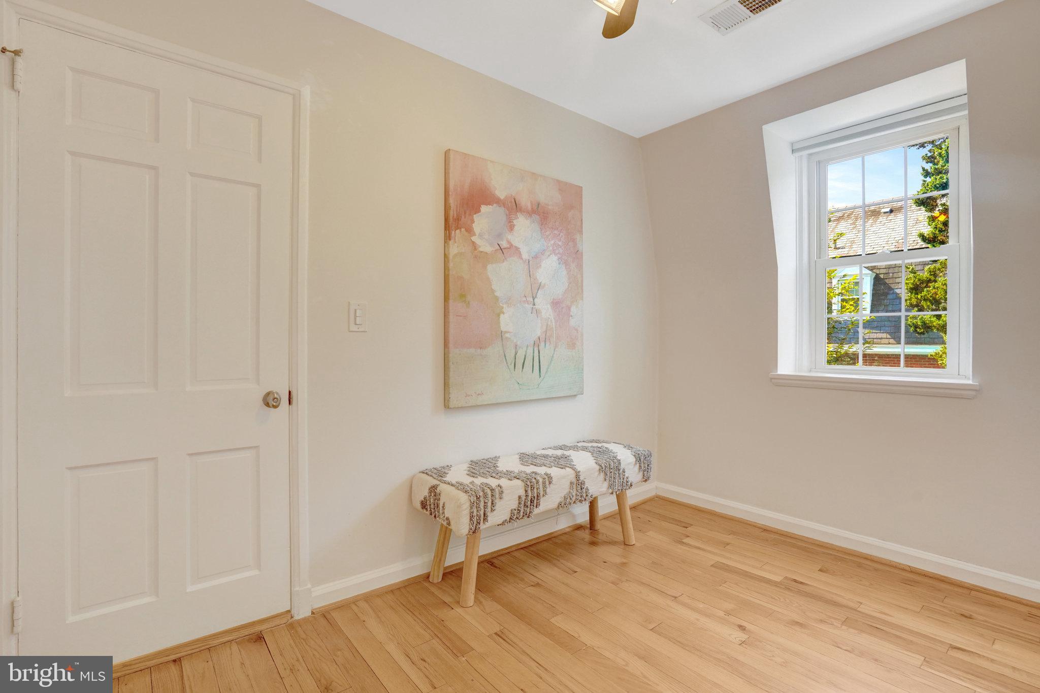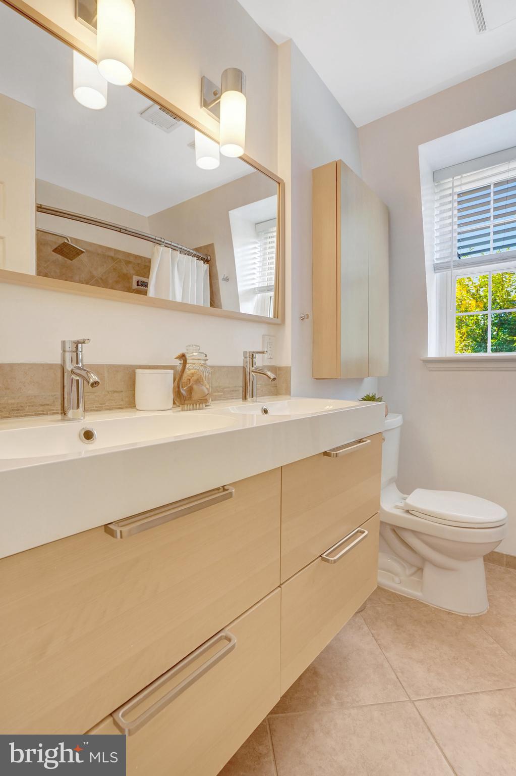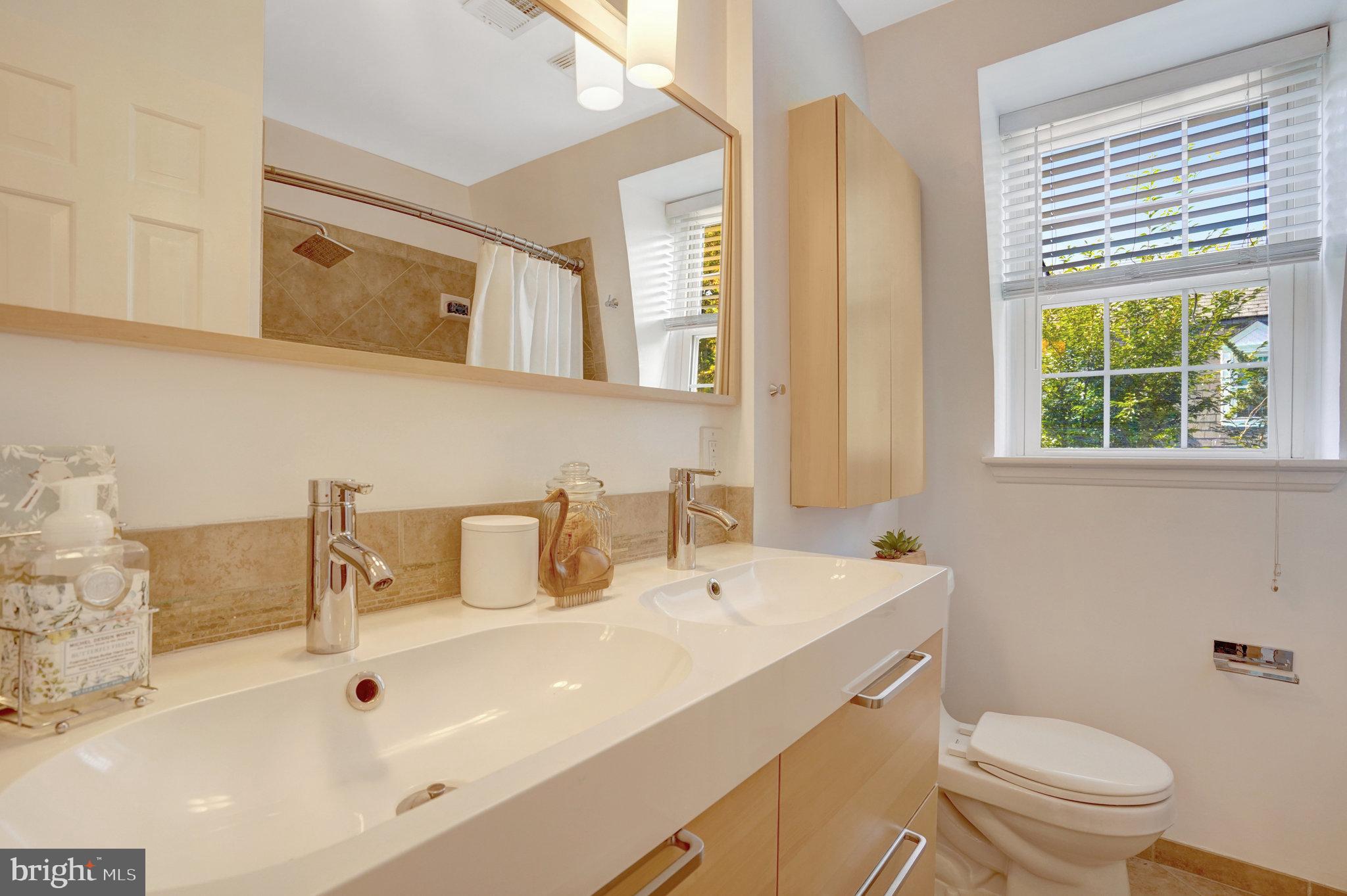 Upstairs you will find a remodeled bath with double sinks! Two bedrooms. Master bedroom has two large closets. All closets have Elfa custom shelving systems. Designer lighting! 3 ceiling fans.