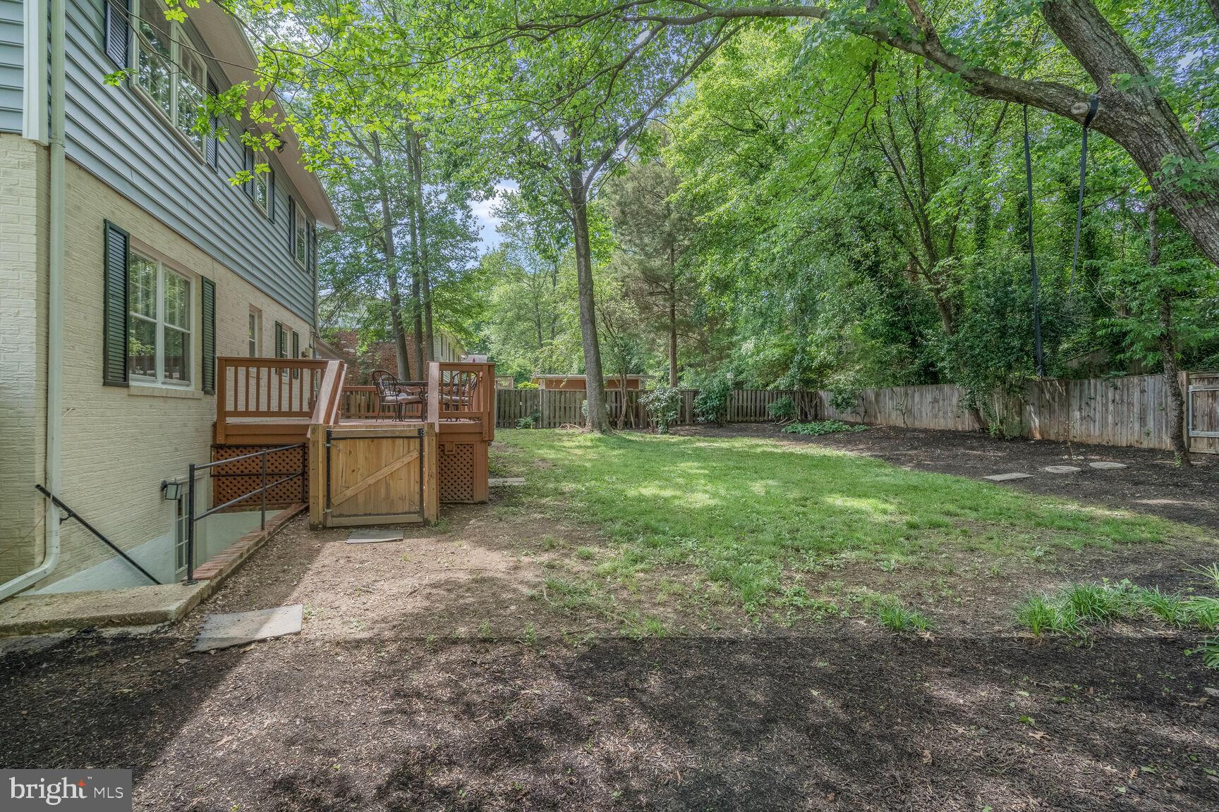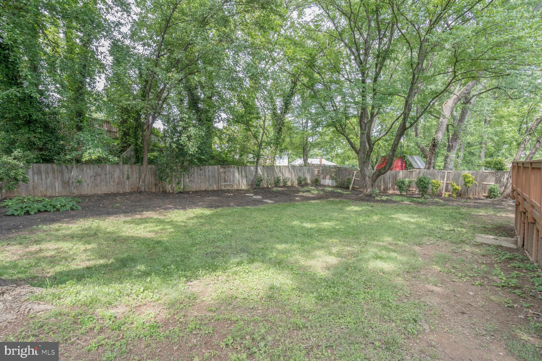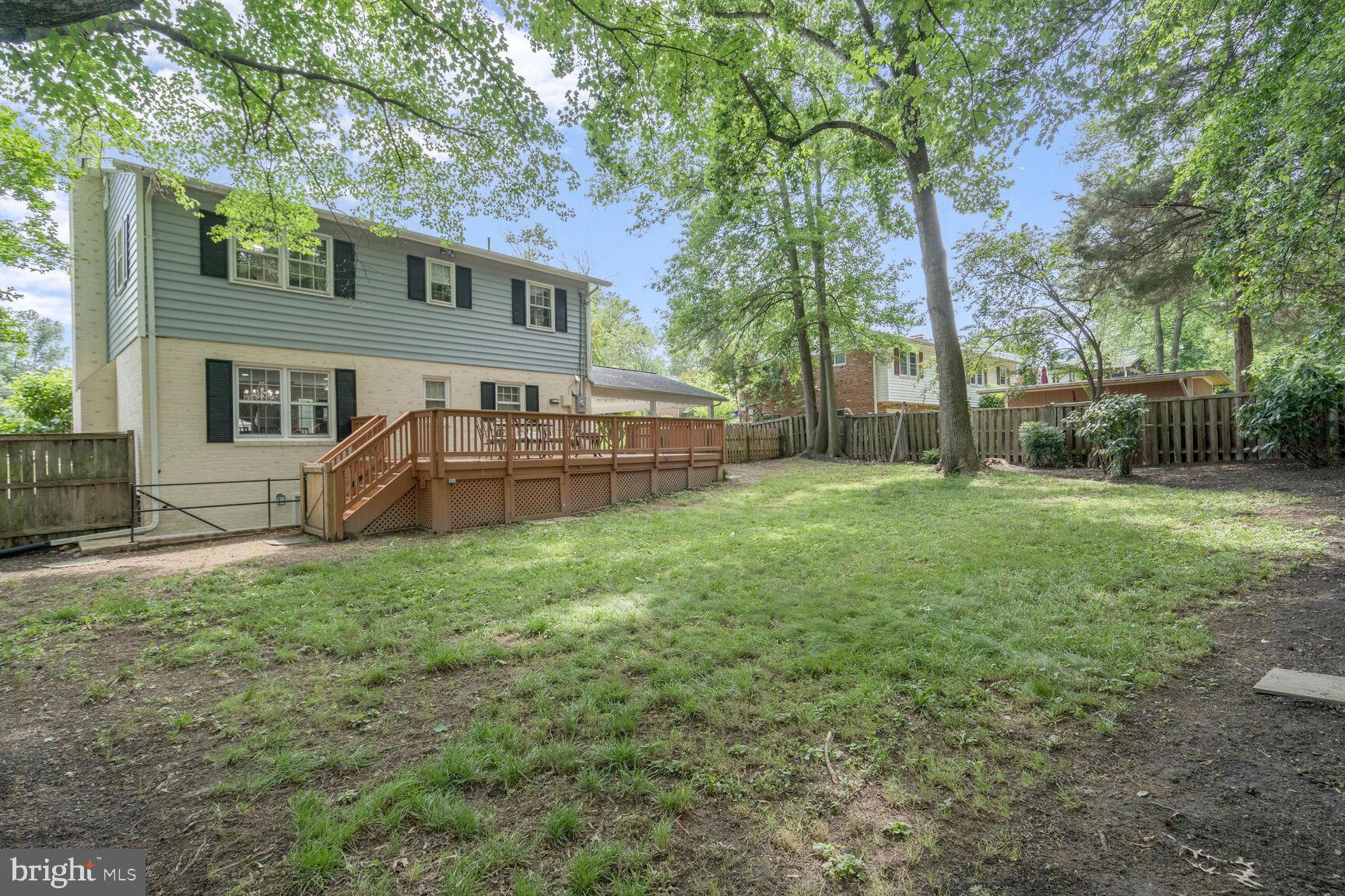 Step outside to a private backyard oasis with a refinished stairway, ideal for alfresco dining, recreation, or unwinding beneath mature trees.