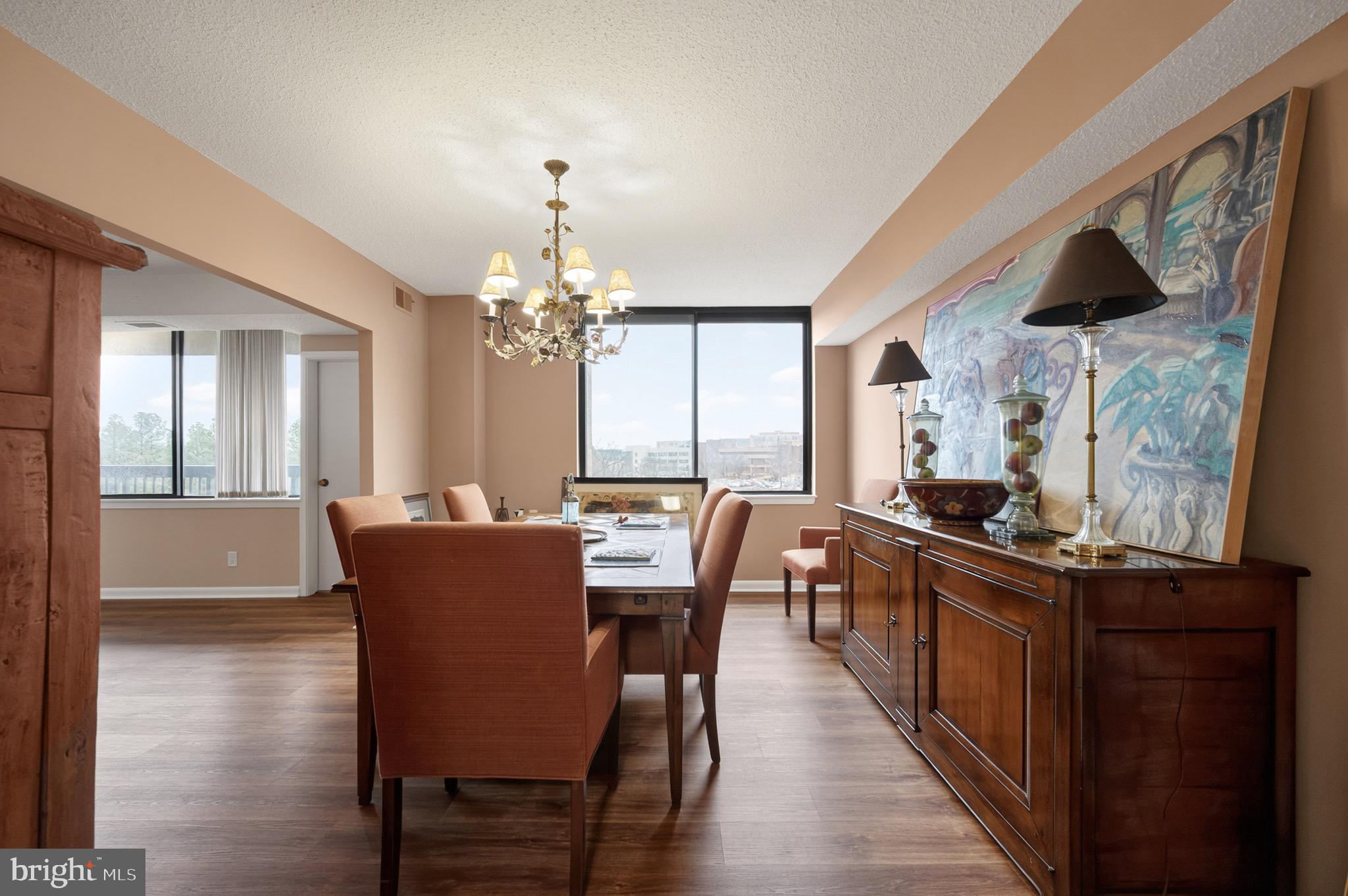 Opportunity knocks with this 3-bedroom, 2.5-bath corner unit condo in the sought-after Skyline House. Priced to sell. Incredible natural light flows throughout the home. Enjoy beautiful sunrises and dinner al fresco on your east-facing balcony. The open floor plan flows seamlessly between the kitchen, living, and dining areas, creating an ideal space for entertaining. The sun-drenched living room features a wall of windows, inviting in natural light and offering picturesque views. The kitchen features stainless steel appliances and granite countertops. Rare in-unit washer and dryer. The spacious primary bedroom features custom built-in closet organizers and a vanity, a walk-in closet, and a separate toilet room and shower with a frameless glass shower door. A bonus room in the hallway gives you ample storage inside the unit. The HVAC was replaced in 2020. One assigned garage parking space and a 3' x 8' storage locker are included, giving you plenty of space for your belongings. Skyline House offers top-tier amenities including a swimming pool, toddlers' pool, fitness center, billiard room, library, party rooms, sundeck, bicycle rooms, and 24-hour concierge service. Basic Cox Cable TV, water, trash, and recycling are included in the condo fee. Located in the heart of Bailey's Crossroads, you'll have direct access to I-395 and be just 4 miles from the Pentagon and Amazon HQ2. Minutes to Shirlington, Pentagon City, Ballston, Old Town, downtown DC, I-495, and Reagan National Airport. Enjoy easy access to dining, shopping, and entertainment at the nearby West Alex Gateway and Harris Teeter. This is an excellent opportunity to create your dream home in a prime Northern Virginia location. Skyline House delivers comfort, convenience, and value all in one.