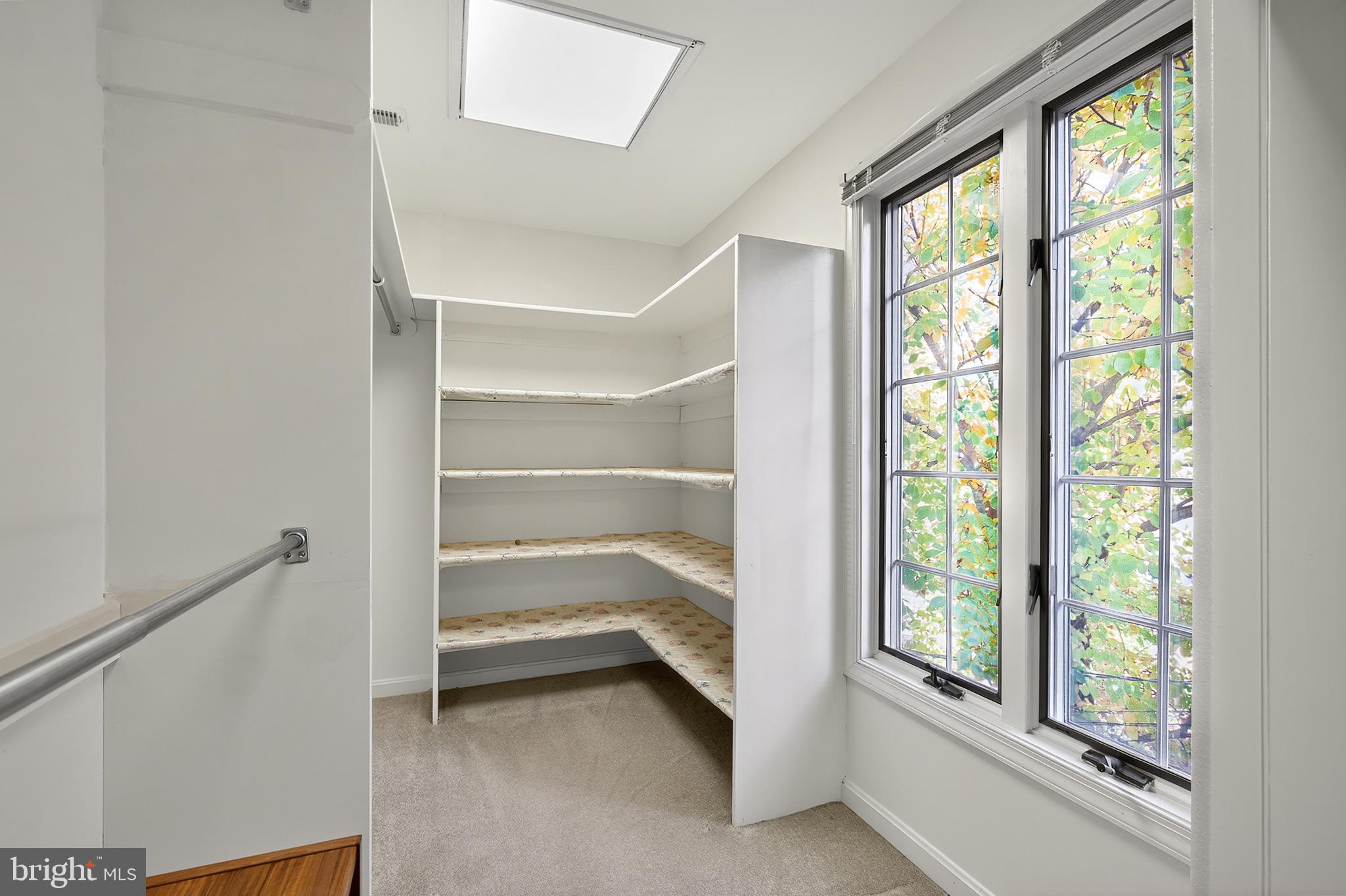 The lower level offers a recreation room with walkout to the side yard, a large laundry room with laundry chute, versatile workshop, and abundant storage. Upstairs, three large bedrooms and a full bath complement the huge primary suite, which includes two oversized walk-in closets and a spa-like bathroom with a glass block shower and soaking tub, separate bathroom area plus a convenient additional half bath. An upper den/office with built-in shelving and walk-in storage closet adds flexibility. The exterior features extensive hardscaping, mature landscaping, a spacious backyard with wooded views for privacy, two sheds (sold as-is), a one-car garage, and an oversized driveway for extra parking.