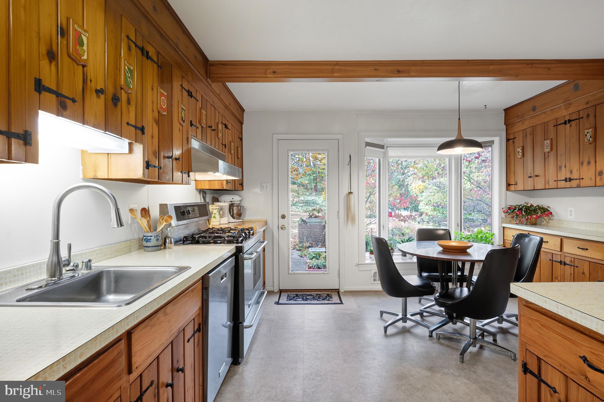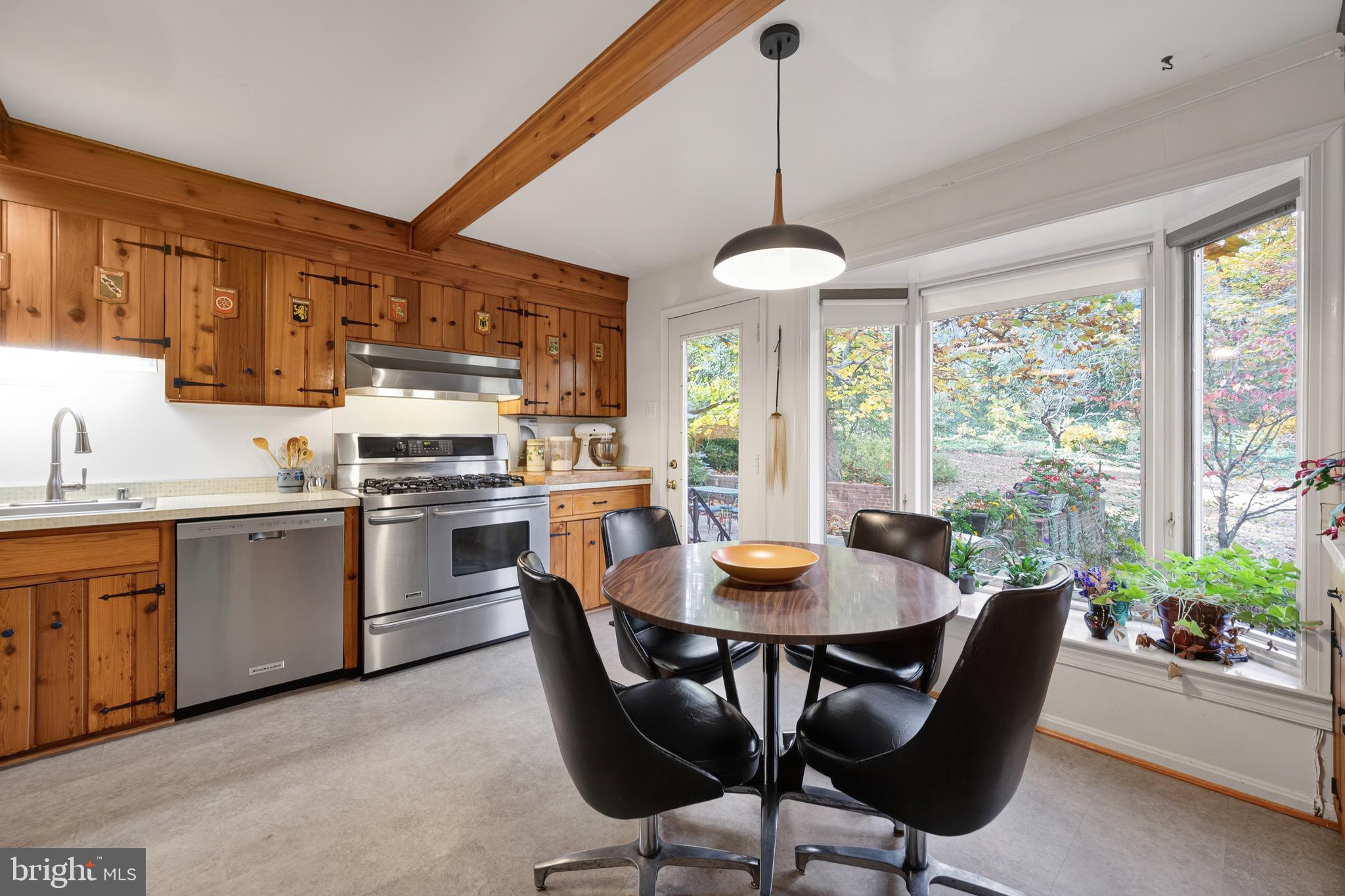 Located in the desirable Barcroft Woods subdivision, this expansive five-level split home with an addition offers over 4,000 square feet of living space on a beautifully landscaped 0.83-acre lot. The main entry opens to a welcoming foyer with coat closet, leading to an eat-in kitchen with a large bay window overlooking the backyard and a walk-in pantry. A spacious living room with a bay window and a separate dining room provide excellent entertaining space, while the family room features a cozy fireplace with dramatic brick wall and French doors opening to the charming brick-walled patio. A convenient half bath and a versatile home office--also ideal as a mudroom--are located near the garage.