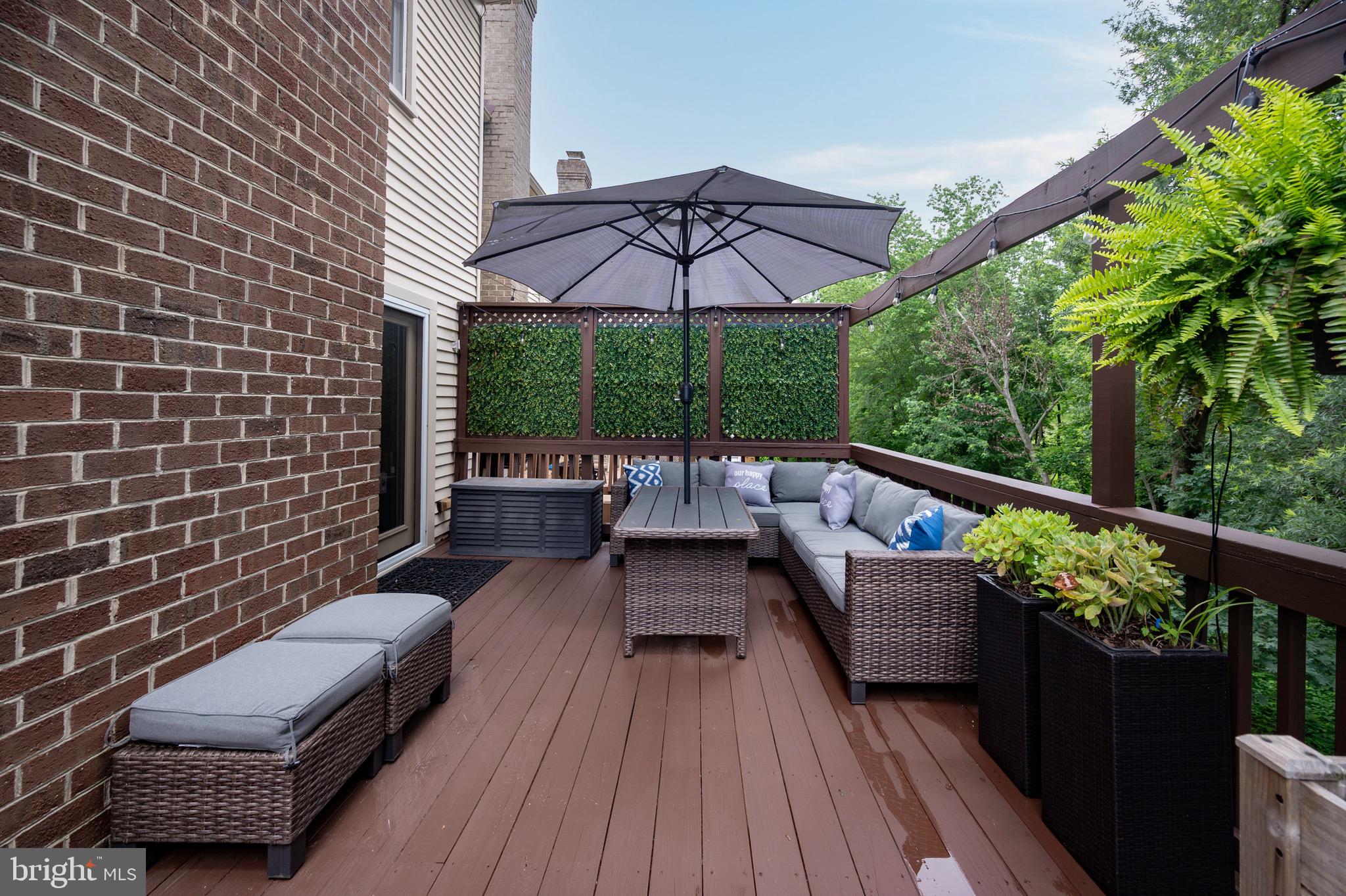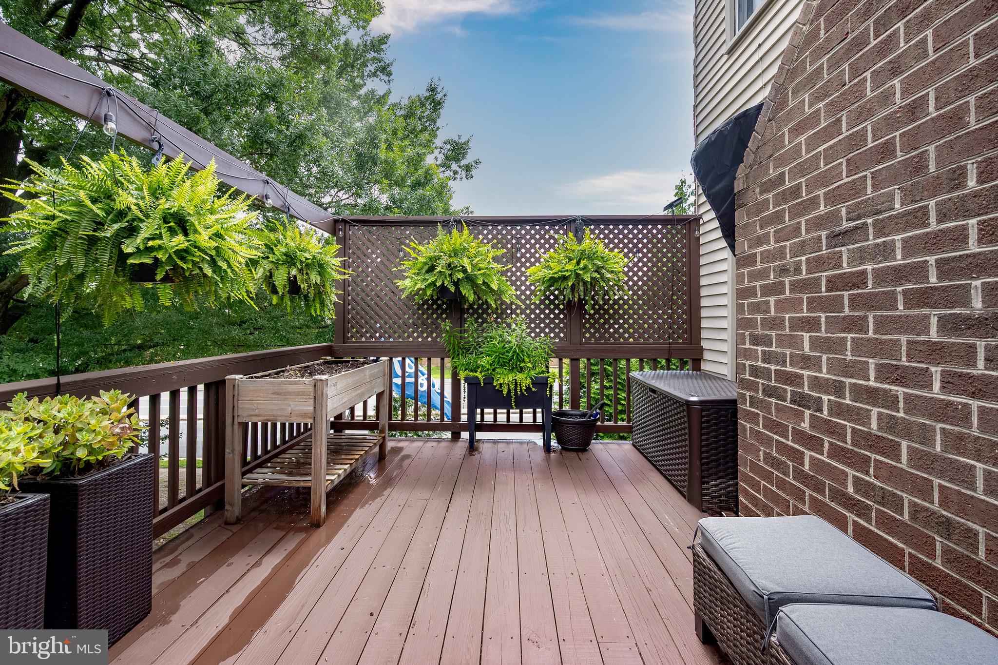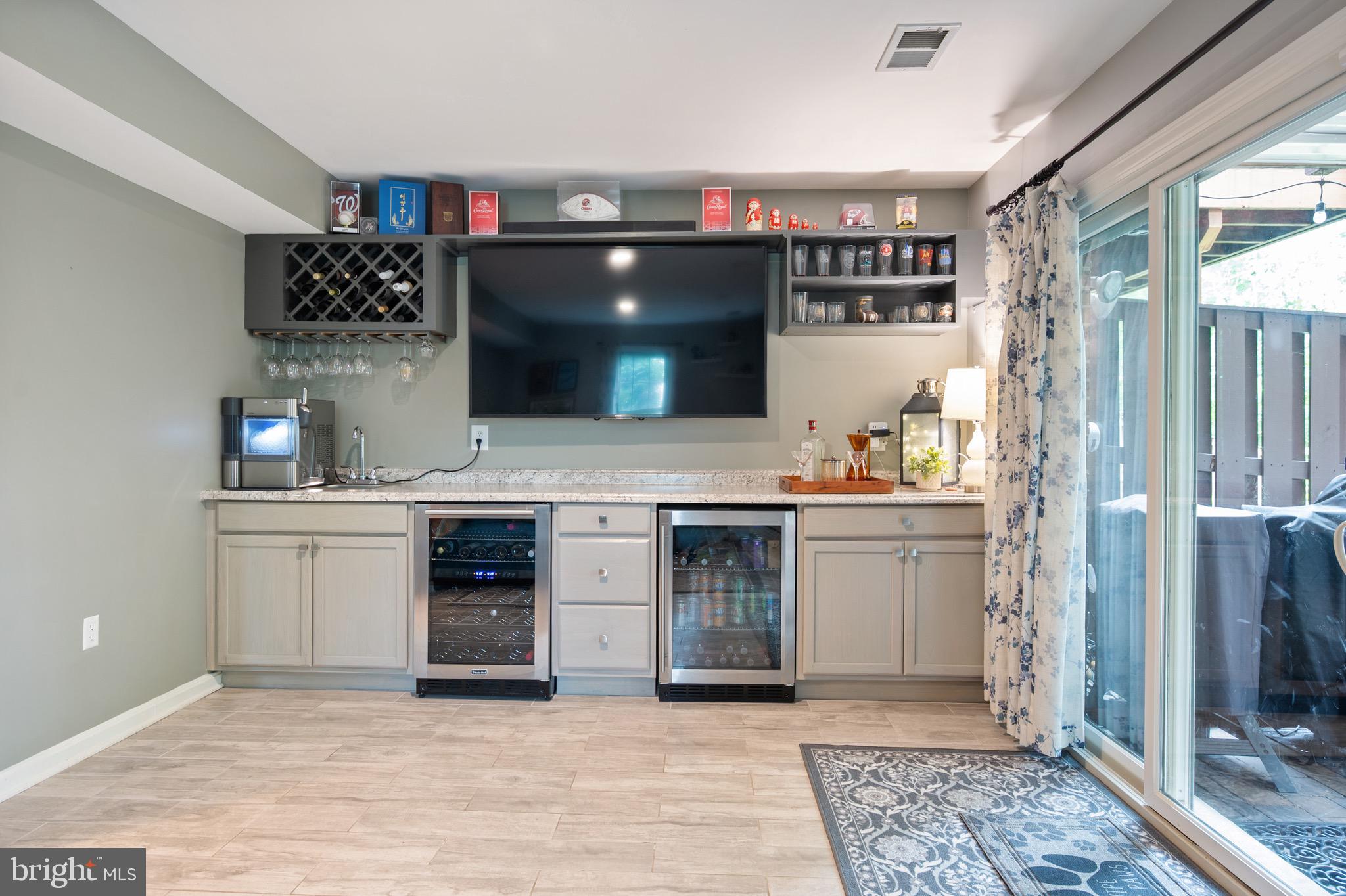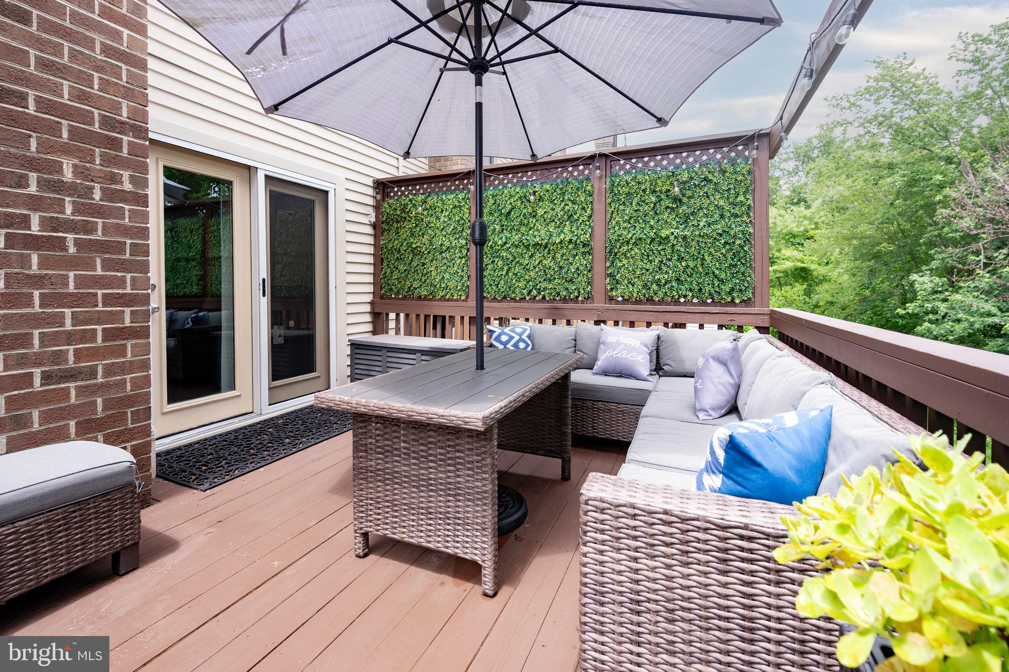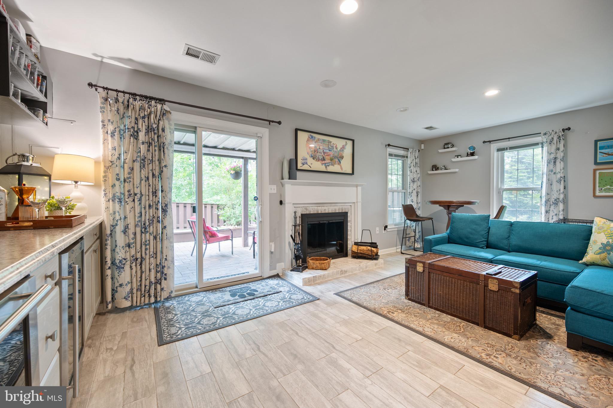 This fabulous end-unit townhouse in the sought-after Kingstowne community offers spacious and stylish living with a classic brick exterior and an ideal layout. With four bedrooms and three and a half bathrooms, the 2440 square foot home provides ample space for comfortable everyday living and entertaining. The open main-level living room features a cozy wood-burning fireplace, while the separate dining room is perfect for formal gatherings. The large, sunny eat-in kitchen boasts granite countertops, updated stainless steel appliances, and a charming opened wall with a sliding barn door, blending functionality with modern farmhouse appeal. Half bath has also been remodeled and has second sliding barn door. Upstairs, you'll find three generously sized bedrooms, including a luxurious primary suite with vaulted ceilings, complete with a spa-like bathroom and a walk-in closet. The light-filled lower level includes a fourth bedroom, a full bathroom, and a recreation room highlighted by a custom-built wet bar with wine and beverage refrigerators and a second wood-burning fireplace. Sliding glass doors open to a beautifully landscaped, fenced-in paver patio, while a spacious deck off the main level provides additional outdoor living space. Extensive updating throughout including all bathrooms have been remodeled. A one-car garage completes this exceptional property.