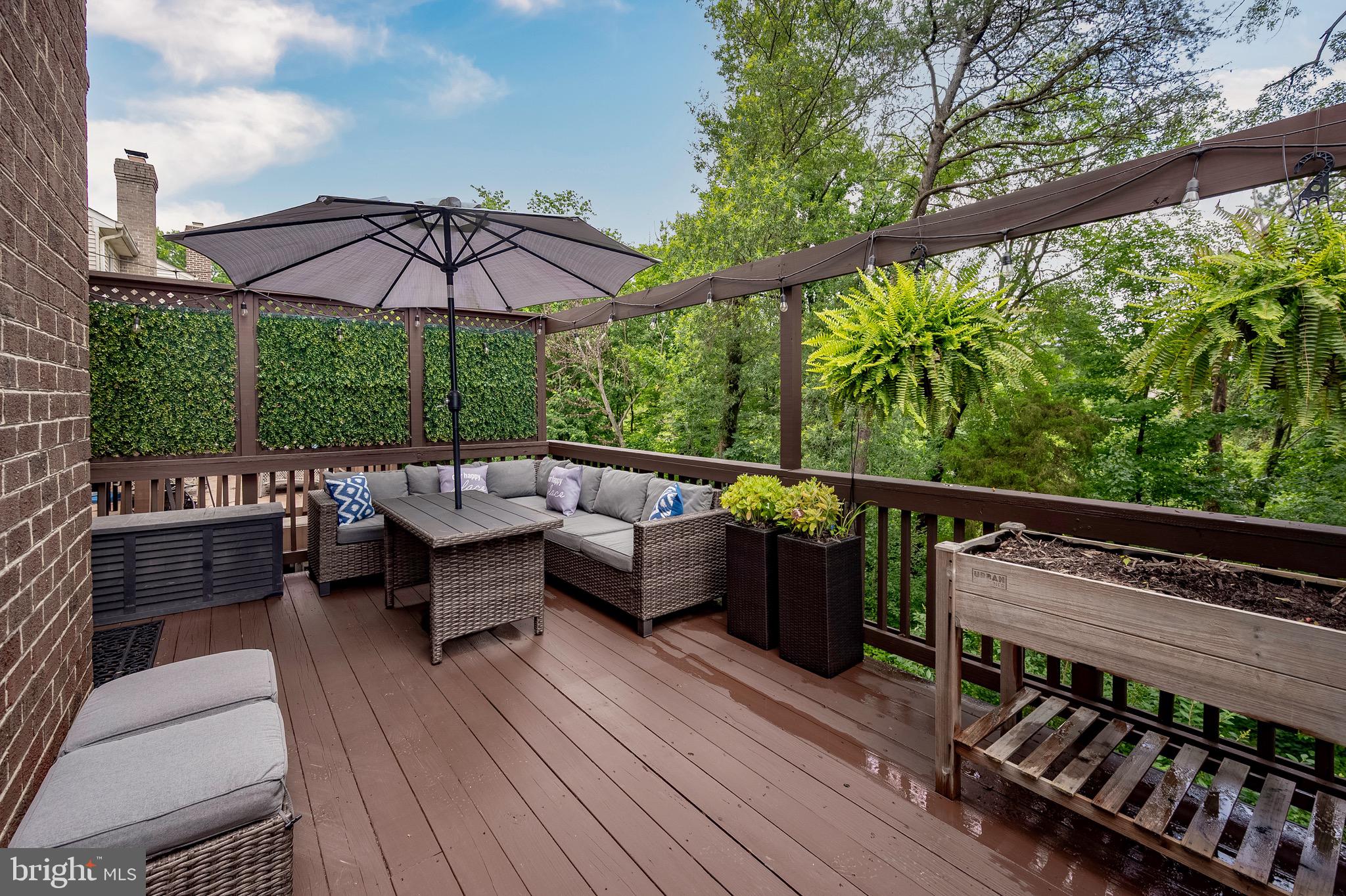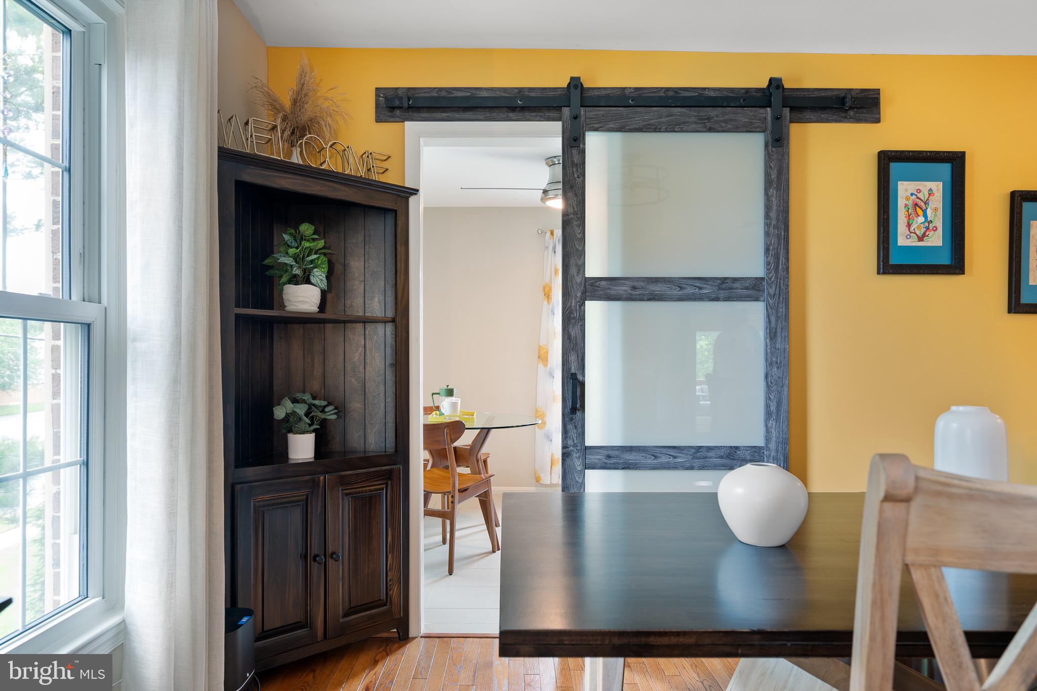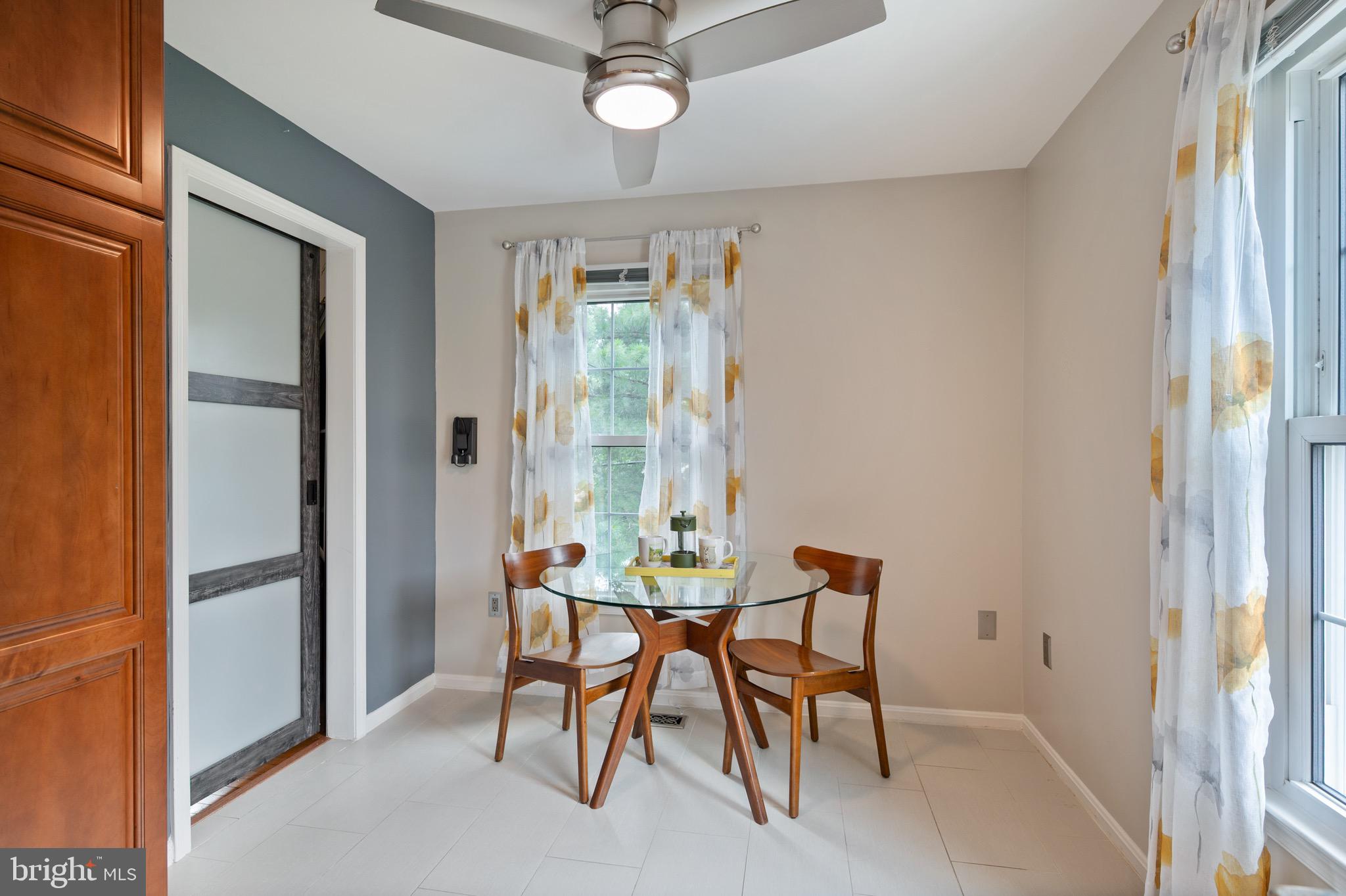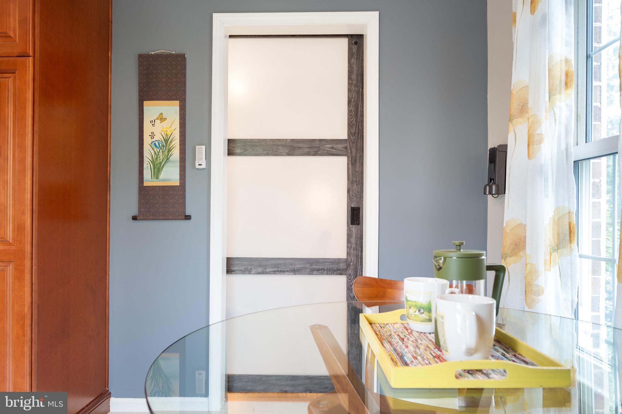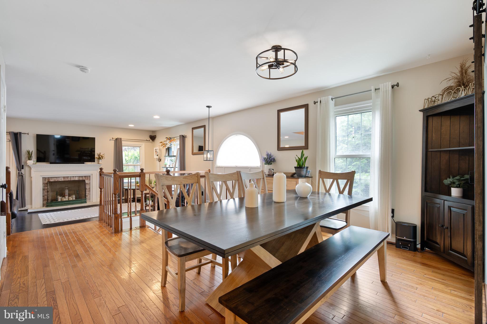 This fabulous end-unit townhouse in the sought-after Kingstowne community offers spacious and stylish living with a classic brick exterior and an ideal layout. With four bedrooms and three and a half bathrooms, the 2440 square foot home provides ample space for comfortable everyday living and entertaining. The open main-level living room features a cozy wood-burning fireplace, while the separate dining room is perfect for formal gatherings. The large, sunny eat-in kitchen boasts granite countertops, updated stainless steel appliances, and a charming opened wall with a sliding barn door, blending functionality with modern farmhouse appeal. Half bath has also been remodeled and has second sliding barn door. Upstairs, you'll find three generously sized bedrooms, including a luxurious primary suite with vaulted ceilings, complete with a spa-like bathroom and a walk-in closet. The light-filled lower level includes a fourth bedroom, a full bathroom, and a recreation room highlighted by a custom-built wet bar with wine and beverage refrigerators and a second wood-burning fireplace. Sliding glass doors open to a beautifully landscaped, fenced-in paver patio, while a spacious deck off the main level provides additional outdoor living space. Extensive updating throughout including all bathrooms have been remodeled. A one-car garage completes this exceptional property.