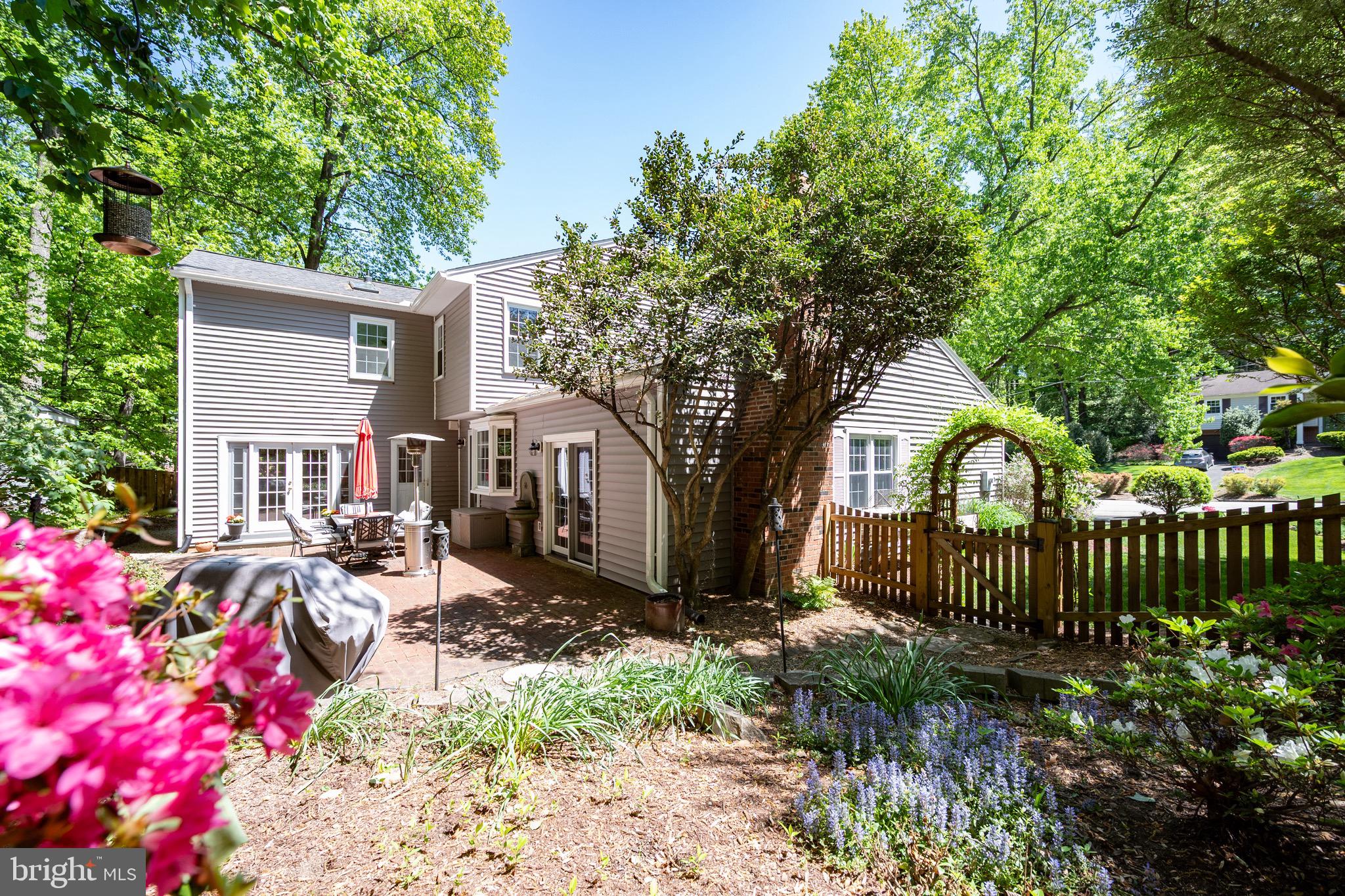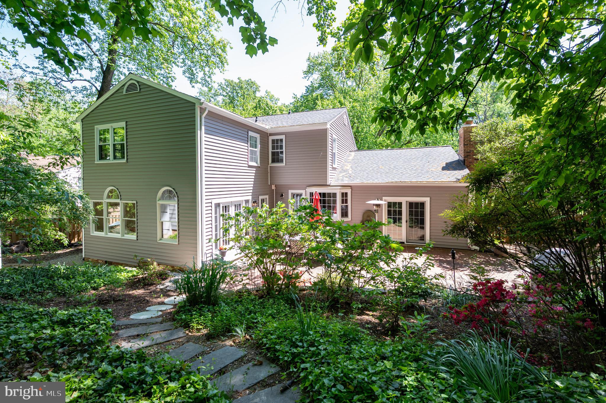 Meticulously maintained traditional colonial, updated and expanded for modern living. The two-level addition features a majestic primary suite with vaulted ceilings, three closets, and a luxurious bath, plus a light filled sunroom below. Four bedrooms, two and a half baths, formal living and dining rooms, family room off the kitchen, two wood-burning fireplaces and a fully finished basement. New roof, siding, gutters, and doors. Oversized two car garage. Retreat to a gorgeous brick patio with fountain, surrounded by native azaleas, hydrangeas, dogwoods, peonies, herb garden, and raised beds. Wake to songbirds on a half-acre private wooded lot, a certified wildlife habitat shared with foxes, deer, and owls, yet just 15 minutes to Old Town Alexandria, 25 minutes to National Airport, and 12 miles to DC. Close to MetroRail, Ft. Belvoir, Wegmans and the Pentagon.