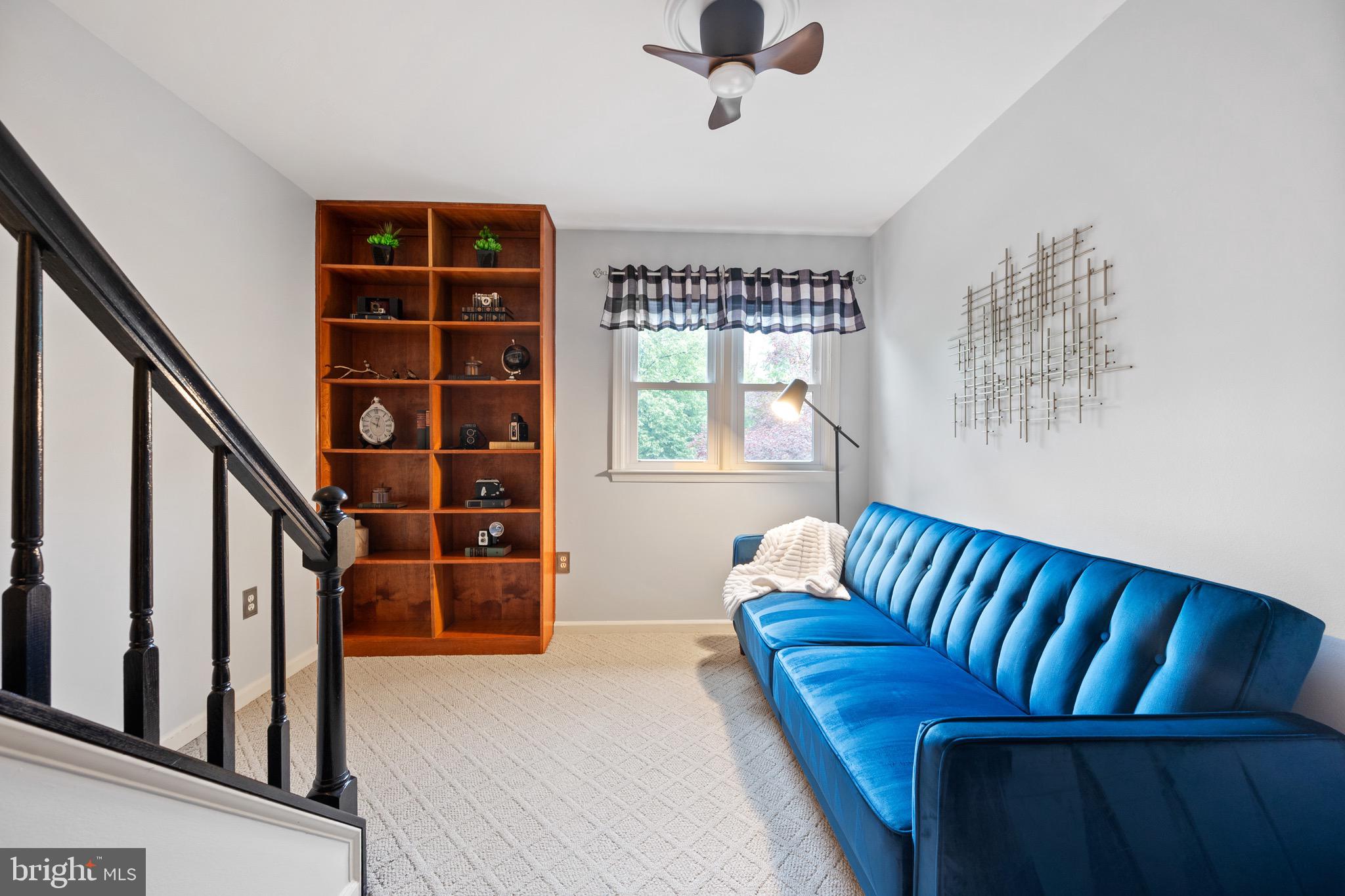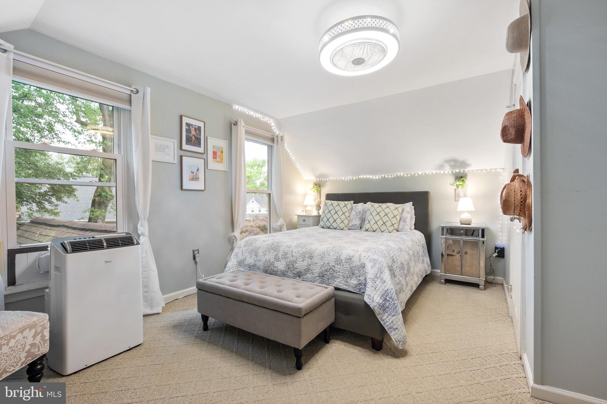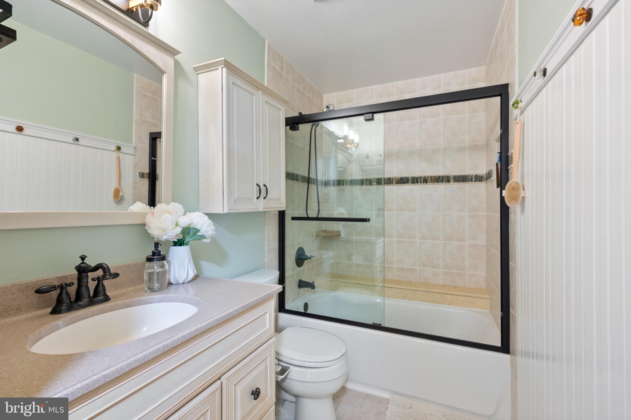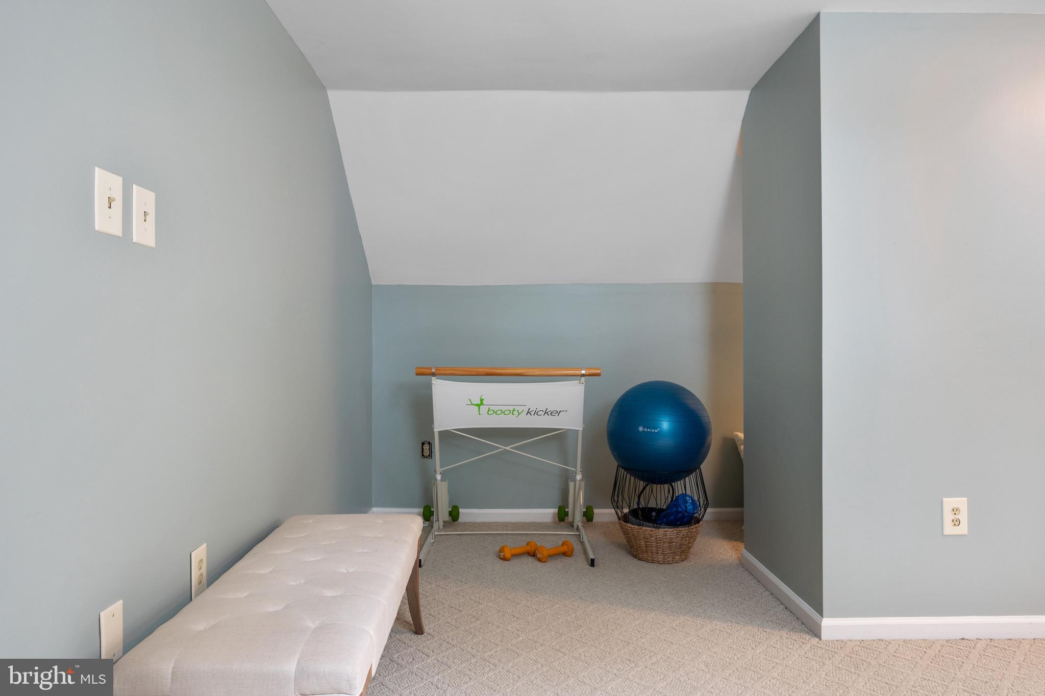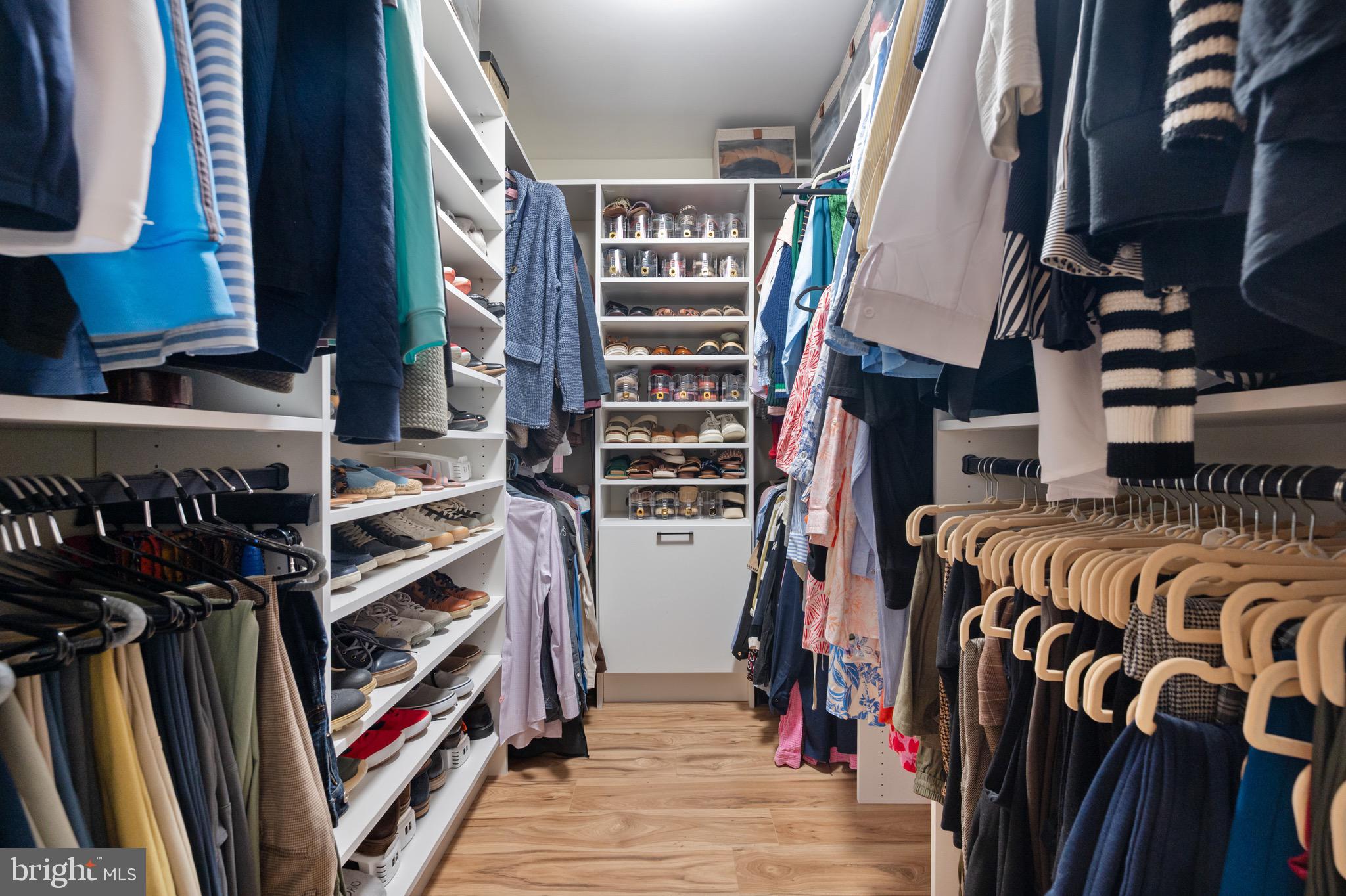 A finished laundry and mudroom with utility sink offers custom nooks for coats and shoe storage, adding to the home's thoughtful design. The upper level features four spacious bedrooms, including a luxurious primary suite with a walk-in closet upgraded with a custom shelving system. The fully renovated primary bathroom includes premium tile work, a frameless glass shower enclosure, and a double vanity with custom cabinetry. French doors from the primary suite lead to a spacious home office or sitting room, highlighted by custom bookshelves and skylights. A walk-through library connects to a staircase leading to the third level, which includes a fifth bedroom and a large recreation room boasting two skylights and a breathtaking lake view.