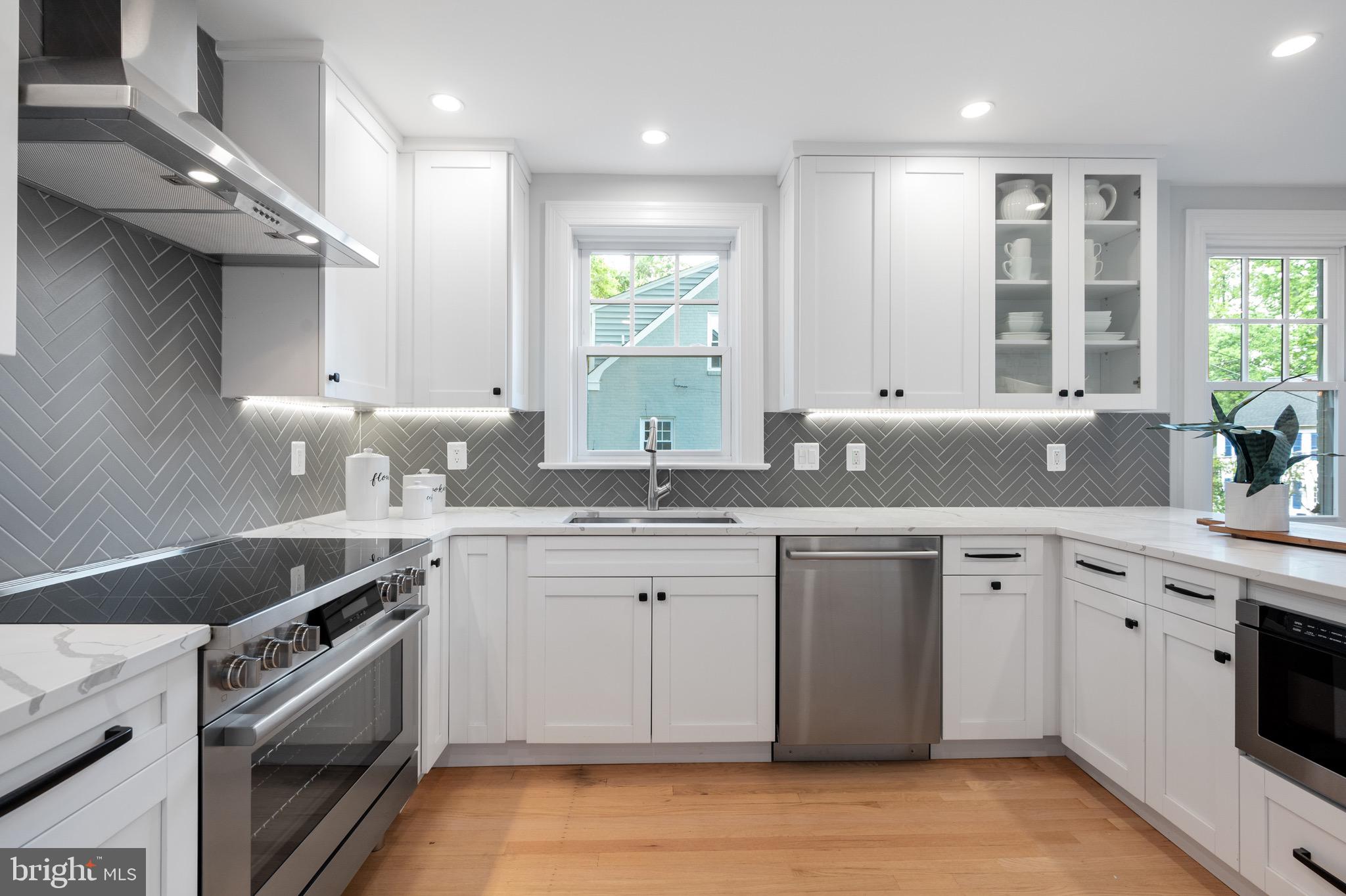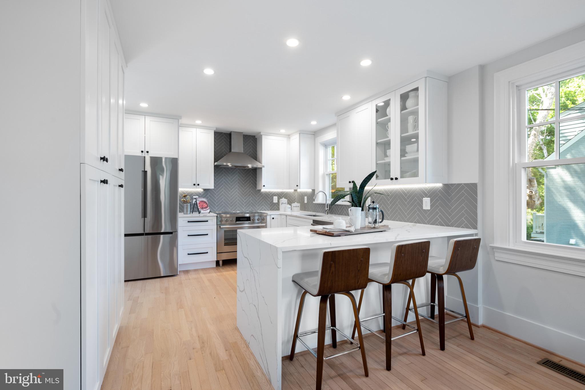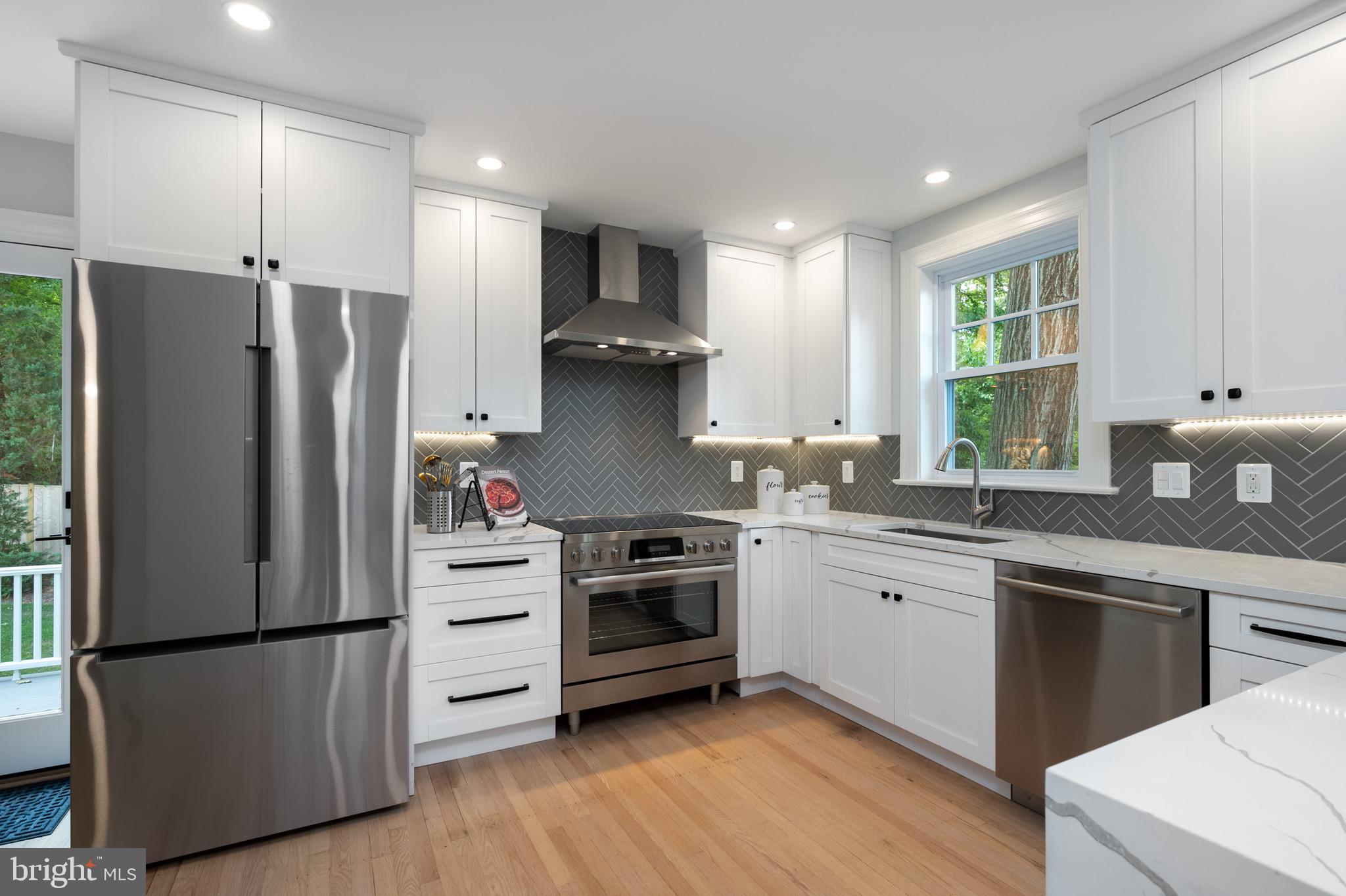 The attention to detail in the remodeling and expansion is evident in this 3-level home and the addition of modern amenities blends seamlessly with the charm of the original home. Water views of the Potomac River, provide a tranquil retreat. Almost 2800 square feet of living space in main house plus an amazing detached two car garage and 324 sq ft of conditioned office space. The main level's wood-burning fireplace creates a welcoming atmosphere. Gourmet kitchen with custom cabinets, quartz counters, breakfast bar and high end appliances including induction cooktop. The addition of a half bath and office/den space adds practicality and functionality. The upper level's two en-suite bedrooms, including a luxurious primary bedroom with bathroom addition with dual shower head and a double vanity as well as a huge walk-in closet with safe. The lower level's third bedroom, full bath, and spacious family room offer additional living space, perfect for relaxation or entertainment. The property's stunning hardscaping and landscaping, including a custom deck and fenced yard, enhance outdoor living and curb appeal. With convenient access to amenities and the George Washington Parkway, this remodeled home on the East side of Wellington offers both comfort and luxury.