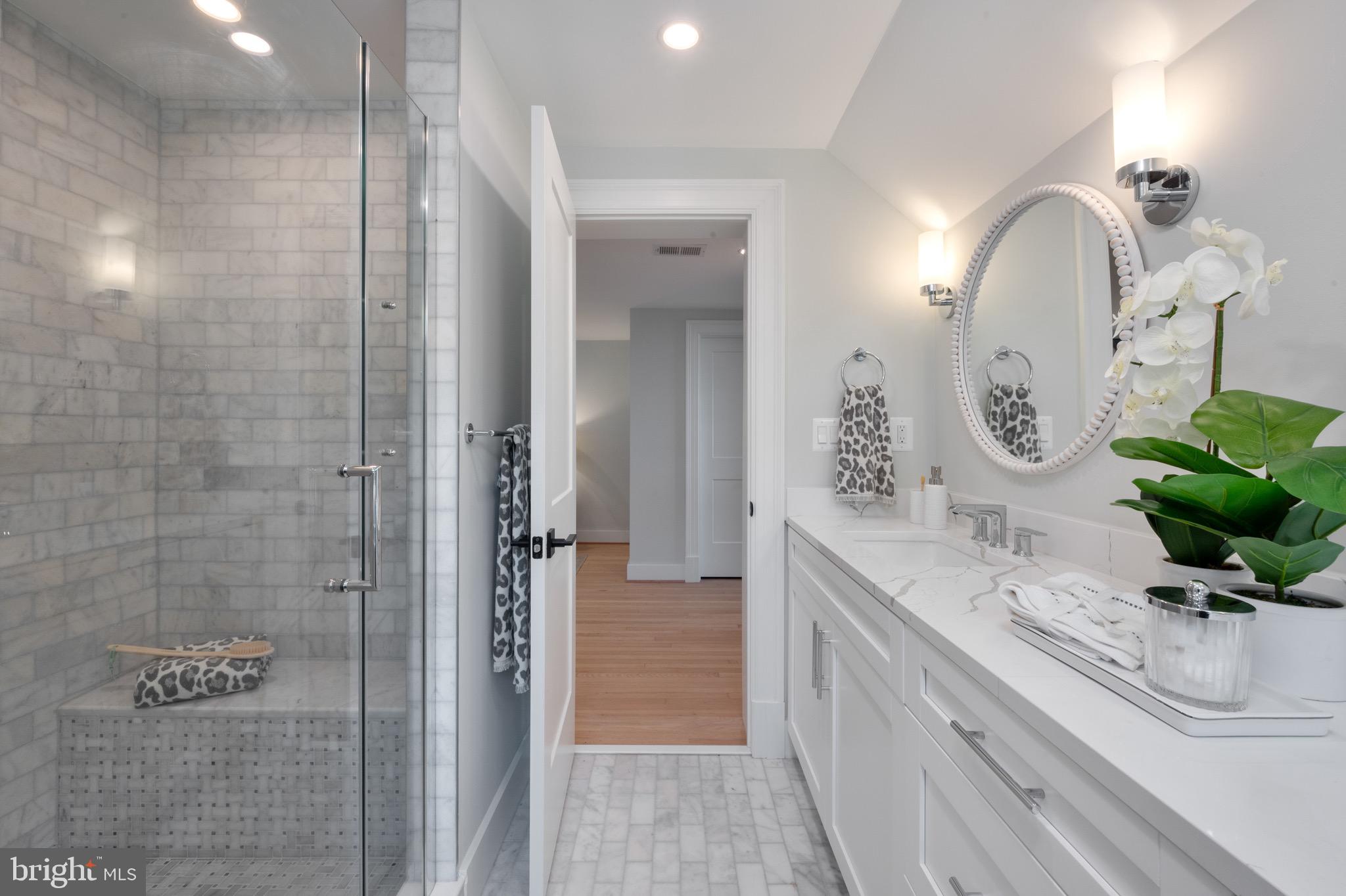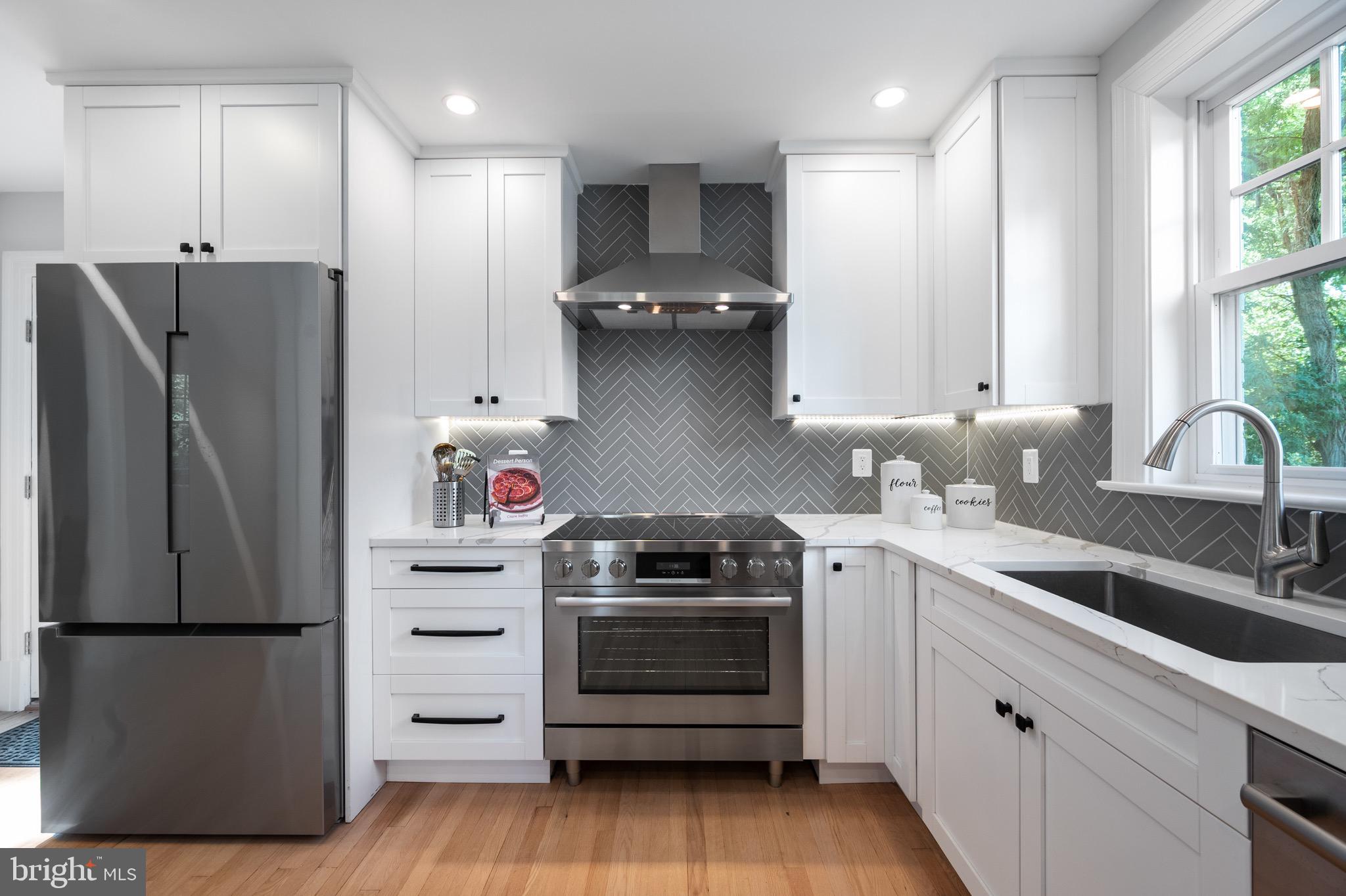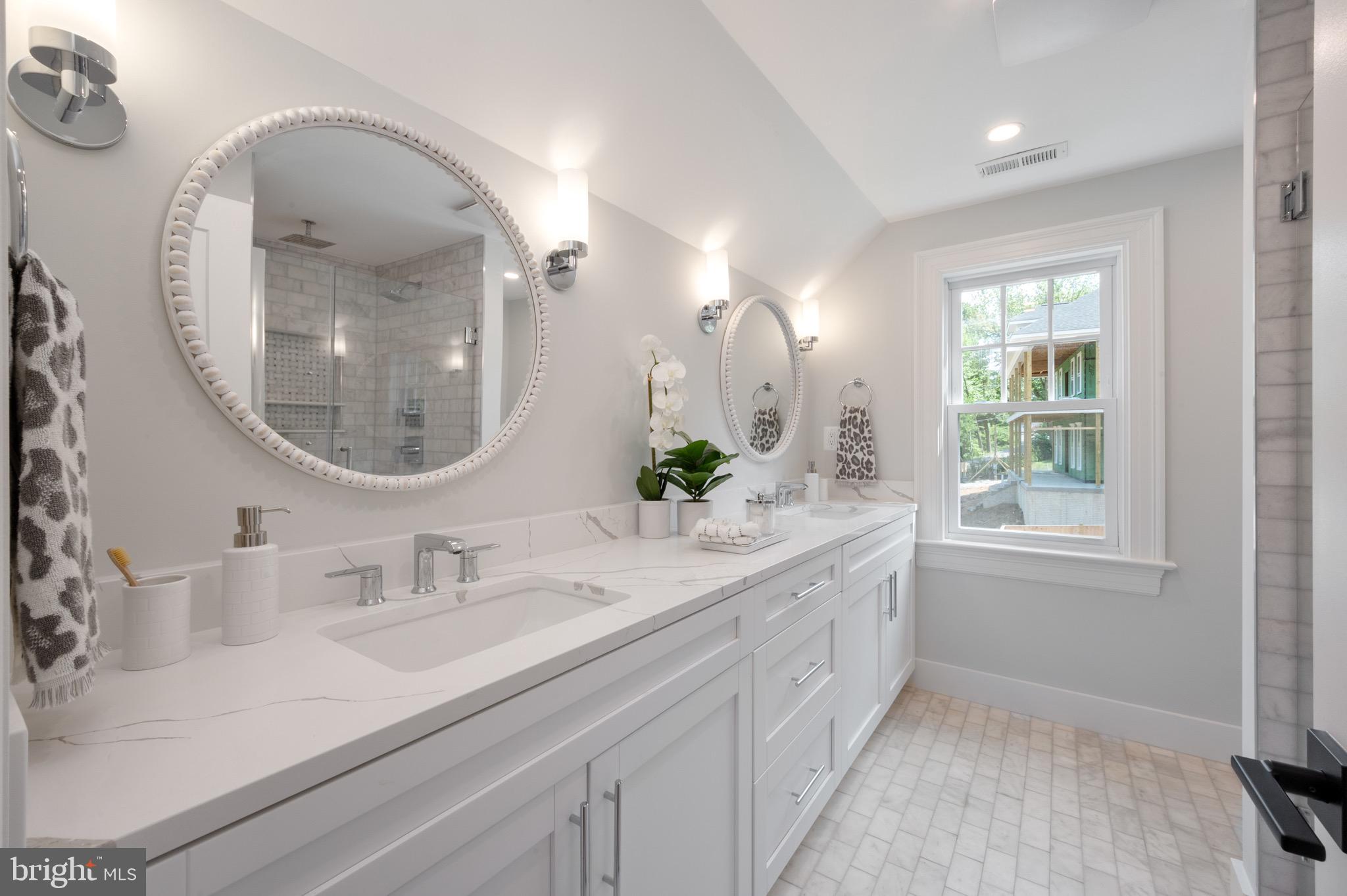 The attention to detail in the remodeling and expansion is evident in this 3-level home and the addition of modern amenities blends seamlessly with the charm of the original home. Water views of the Potomac River, provide a tranquil retreat. Almost 2800 square feet of living space in main house plus an amazing detached two car garage and 324 sq ft of conditioned office space. The main level's wood-burning fireplace creates a welcoming atmosphere. Gourmet kitchen with custom cabinets, quartz counters, breakfast bar and high end appliances including induction cooktop. The addition of a half bath and office/den space adds practicality and functionality. The upper level's two en-suite bedrooms, including a luxurious primary bedroom with bathroom addition with dual shower head and a double vanity as well as a huge walk-in closet with safe. The lower level's third bedroom, full bath, and spacious family room offer additional living space, perfect for relaxation or entertainment. The property's stunning hardscaping and landscaping, including a custom deck and fenced yard, enhance outdoor living and curb appeal. With convenient access to amenities and the George Washington Parkway, this remodeled home on the East side of Wellington offers both comfort and luxury.