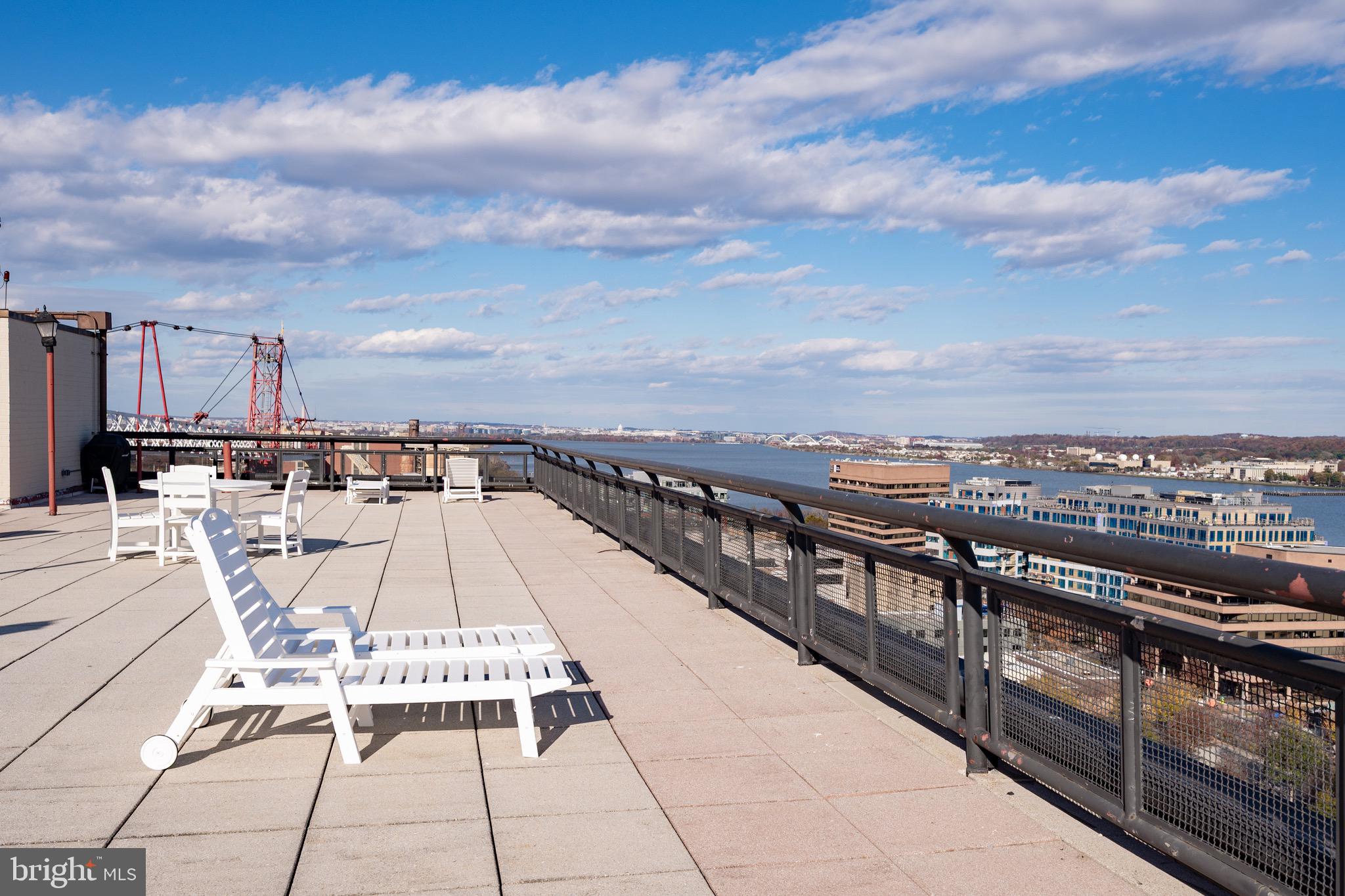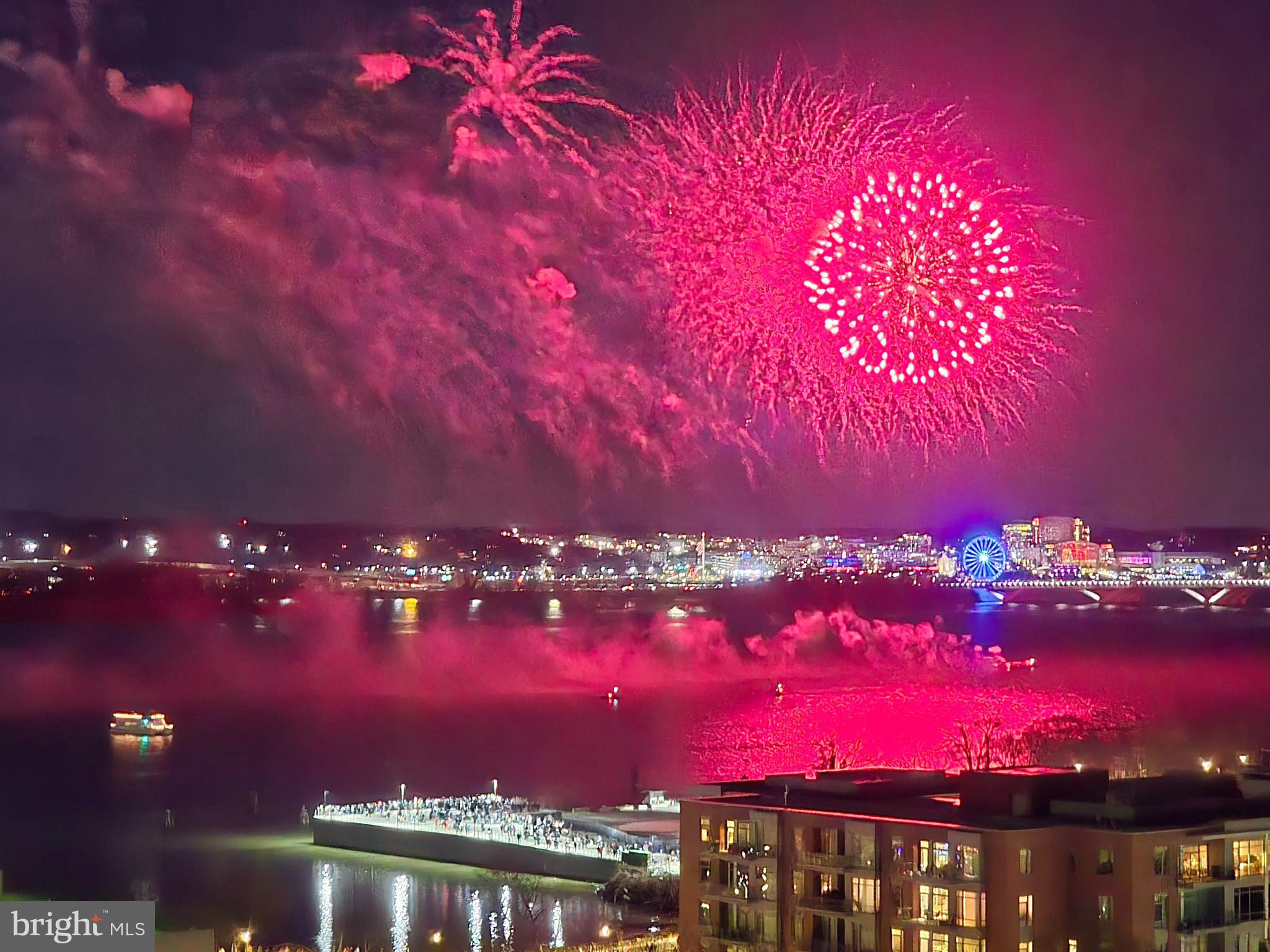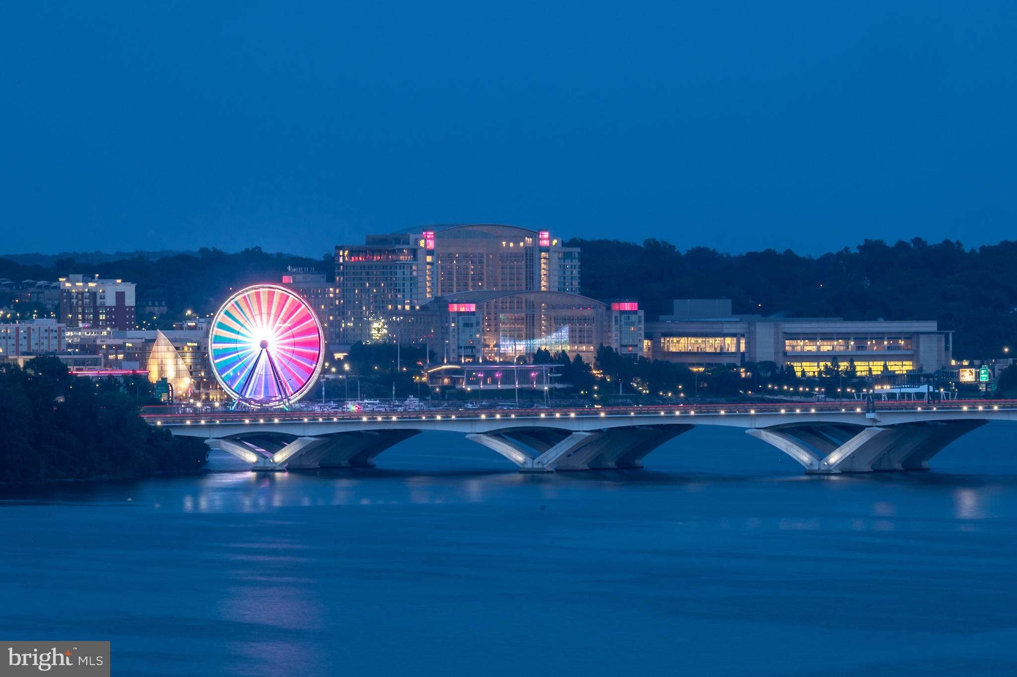 Beautifully remodelled top floor penthouse 1-bedroom, 1-bath condo with rare, unobstructed panoramic views of the Potomac River, National Harbor, MGM, and sunsets over the Masonic Temple. Coveted corner unit with no neighbors on either side. Extremely rare board approved washer and dryer inside the unit. Less than 1% of units have a washer and dryer inside the unit in this building. This bright, spacious home features a beautifully renovated bathroom with marble tile, custom frameless shower door, upgraded cabinetry, lighting, flooring, and fixtures. The entire unit was freshly repainted in 2021, and the kitchen includes repainted cabinetry, stainless steel appliances, gas cooking, brand new microwave/ air fryer combo and a garbage disposal. Thoughtfully added custom lighting--including living room sconces, a dining chandelier, and bedroom sconces--creates a warm, upscale ambiance. Elegant glass French doors with vintage knobs and custom window and door shades elevate the space even further. Enjoy an open floor plan, walk-in closet with custom built-ins. A private balcony with no adjacent balconies, and breathtaking sunrise and sunset views. A valuable assigned corner garage parking space (worth $10-15K and rentable/sellable) is included. All utilities including gas, electricity and water are included (except wifi/cable) are covered in the condo fee. The building offers daytime concierge service and a rooftop terrace with sweeping views of DC. The best view in town to watch the Old Town/DC fireworks! Located just steps from Old Town's shops, restaurants, the waterfront, Metro, Harris Teeter/Trader Joe's, bike paths, and minutes to Washington DC and National Airport--this exceptional condo offers unmatched views, upgrades, and convenience.