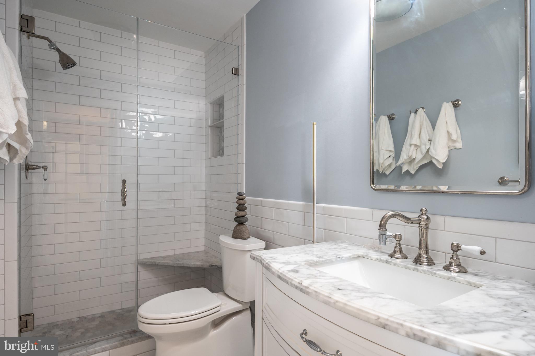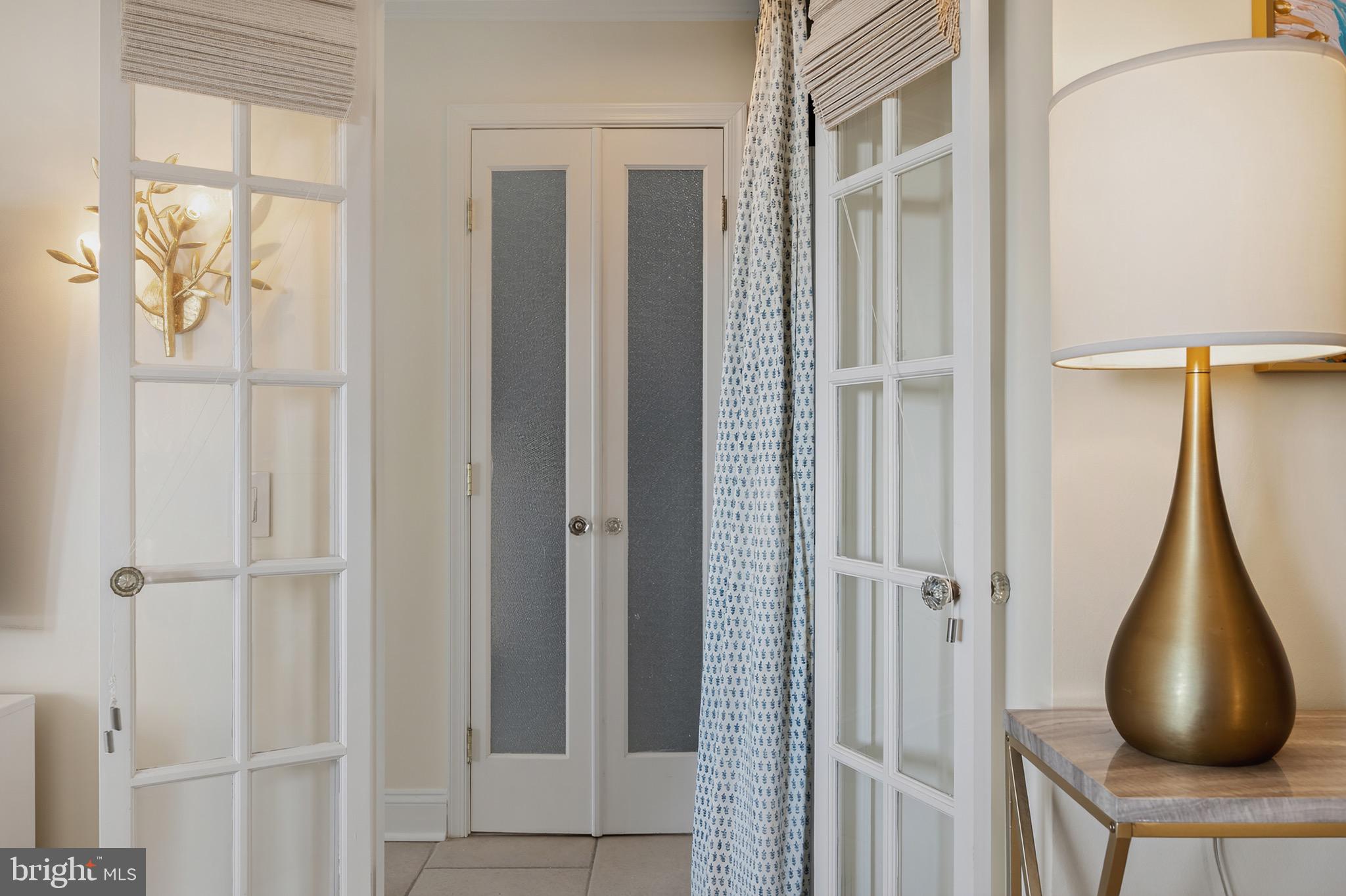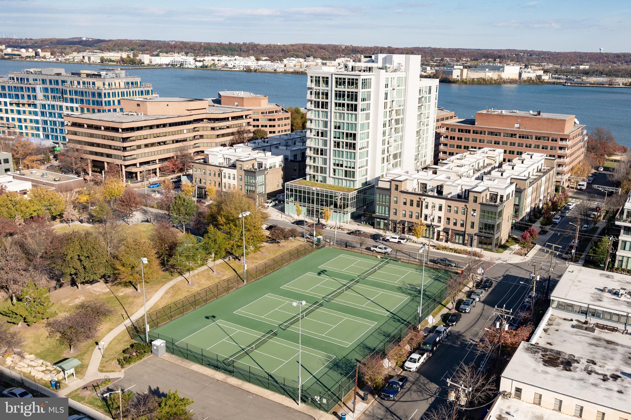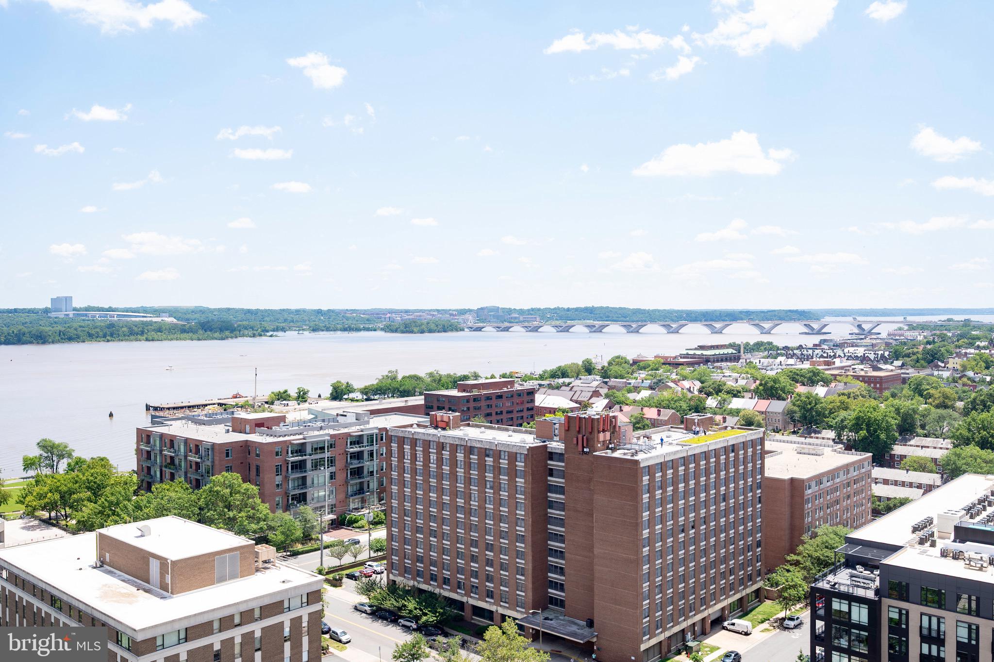 Beautifully remodelled top floor penthouse 1-bedroom, 1-bath condo with rare, unobstructed panoramic views of the Potomac River, National Harbor, MGM, and sunsets over the Masonic Temple. Coveted corner unit with no neighbors on either side. Extremely rare board approved washer and dryer inside the unit. Less than 1% of units have a washer and dryer inside the unit in this building. This bright, spacious home features a beautifully renovated bathroom with marble tile, custom frameless shower door, upgraded cabinetry, lighting, flooring, and fixtures. The entire unit was freshly repainted in 2021, and the kitchen includes repainted cabinetry, stainless steel appliances, gas cooking, brand new microwave/ air fryer combo and a garbage disposal. Thoughtfully added custom lighting--including living room sconces, a dining chandelier, and bedroom sconces--creates a warm, upscale ambiance. Elegant glass French doors with vintage knobs and custom window and door shades elevate the space even further. Enjoy an open floor plan, walk-in closet with custom built-ins. A private balcony with no adjacent balconies, and breathtaking sunrise and sunset views. A valuable assigned corner garage parking space (worth $10-15K and rentable/sellable) is included. All utilities including gas, electricity and water are included (except wifi/cable) are covered in the condo fee. The building offers daytime concierge service and a rooftop terrace with sweeping views of DC. The best view in town to watch the Old Town/DC fireworks! Located just steps from Old Town's shops, restaurants, the waterfront, Metro, Harris Teeter/Trader Joe's, bike paths, and minutes to Washington DC and National Airport--this exceptional condo offers unmatched views, upgrades, and convenience.
