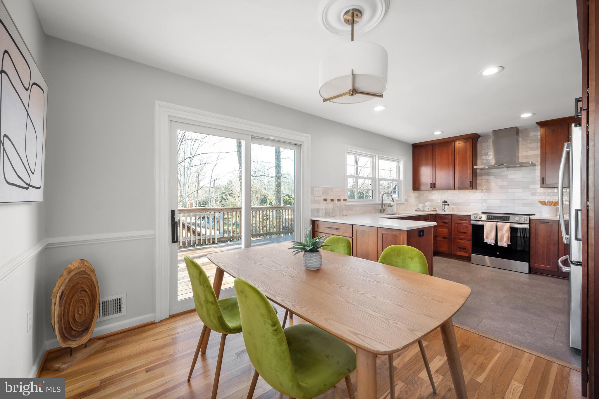 Welcome to Your Dream Home in Collingwood Springs! Nestled on a secluded cul-de-sac in the sought-after Fort Hunt area, this stunningly updated 4-bedroom, 2-bathroom home perfectly combines modern convenience with mid-century charm. Inside, you'll find a light-filled, open-concept layout designed for both comfort and entertaining. The gourmet kitchen, recently renovated with high-end finishes, opens to the dining area, which leads to a walkout deck--ideal for grilling and relaxing with friends while enjoying the expansive fully fenced backyard. The main level living room with wood burning fireplace is perfect for entertaining guests and family. The upper level boasts three spacious bedrooms, including a primary bedroom with en suite access to the fully renovated bathroom. The lower level offers a versatile living space with built-in cabinets, a cozy wood-burning fireplace, and walkout access to the backyard. The bedroom and full bath are perfect to give out of town guests their own privacy or have it as an In-law suite. A dedicated laundry room with ample storage and a bonus room--perfect for an office or additional storage--add to the home's functionality. The convenient carport gives you covered access into the house for bringing groceries in on those bad weather days. This home is close to the wonderful shops and restaurants of Hollin Hall Shopping Center, including the famous Variety Store and Village Hardware! Mount Vernon Park is just around the corner, which offers a pool, pond, tennis/pickleball courts and pavilion in a parklike setting. You are minutes from the George Washington Parkway with its beautiful views of the Potomac River, biking and walking path, easy access to Old Town, Hwy 495, Reagan International Airport. Updates include but are not limited to; New roof (2015), new HVAC (2018), all bathrooms and kitchen completely remodeled (2019-2020), interior (2020) and exterior painted (2018), new windows installed (2018), new sidewalk installed (2019) and driveway repaved (2018). This beautifully updated home is a rare find in a prime location--don't miss your chance to make it yours!