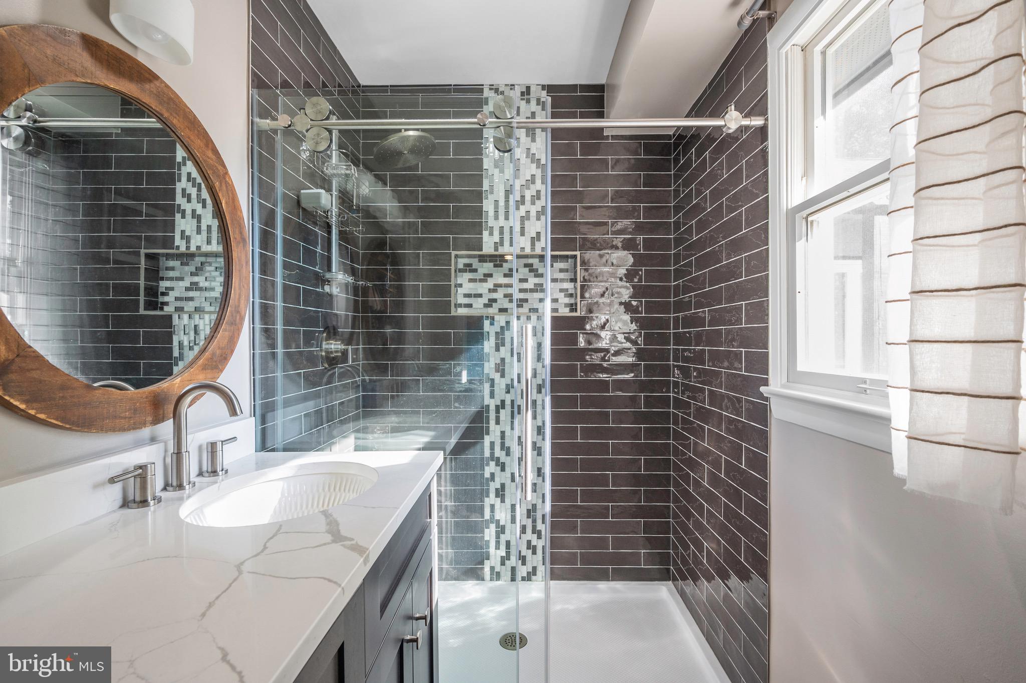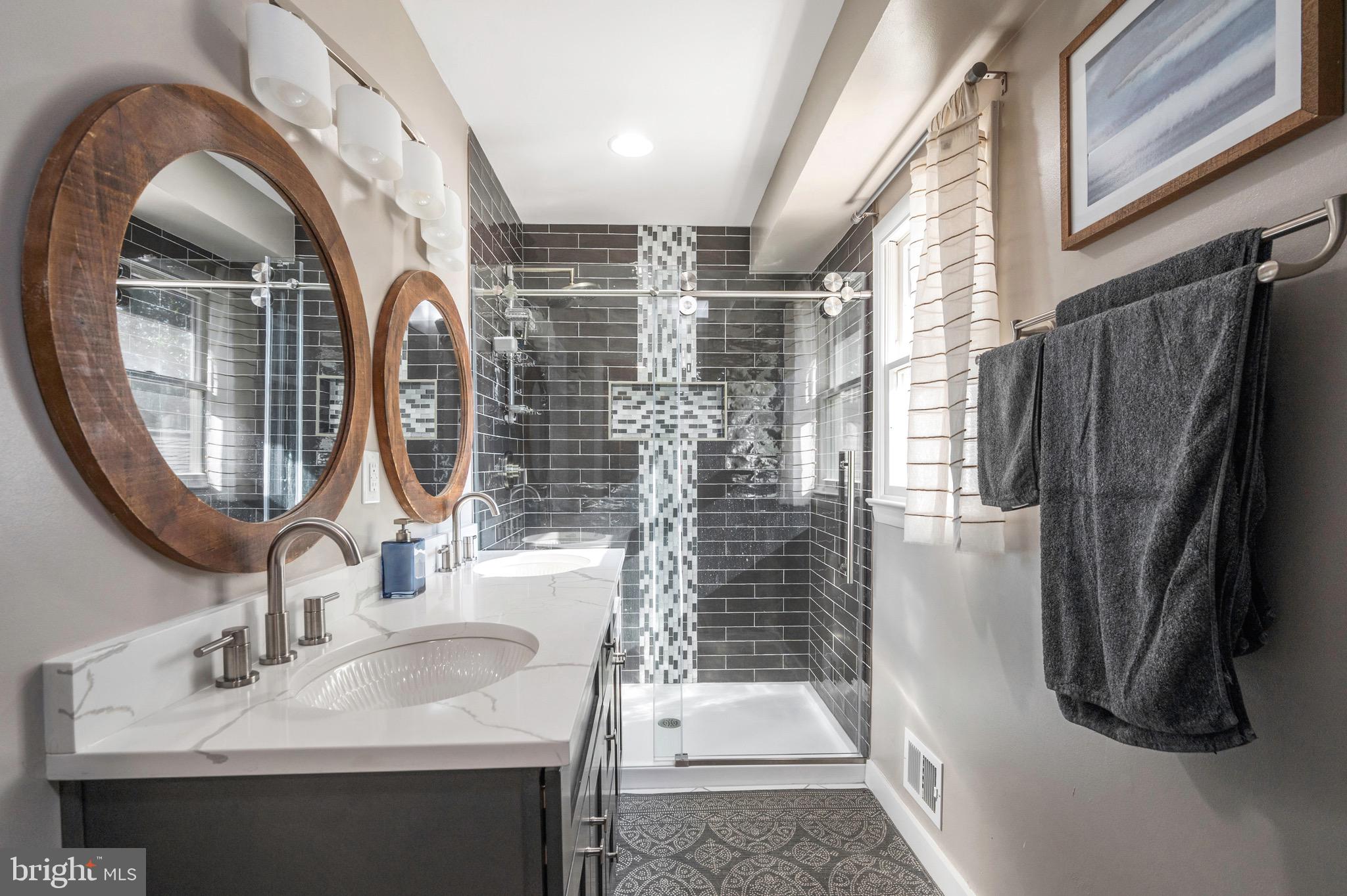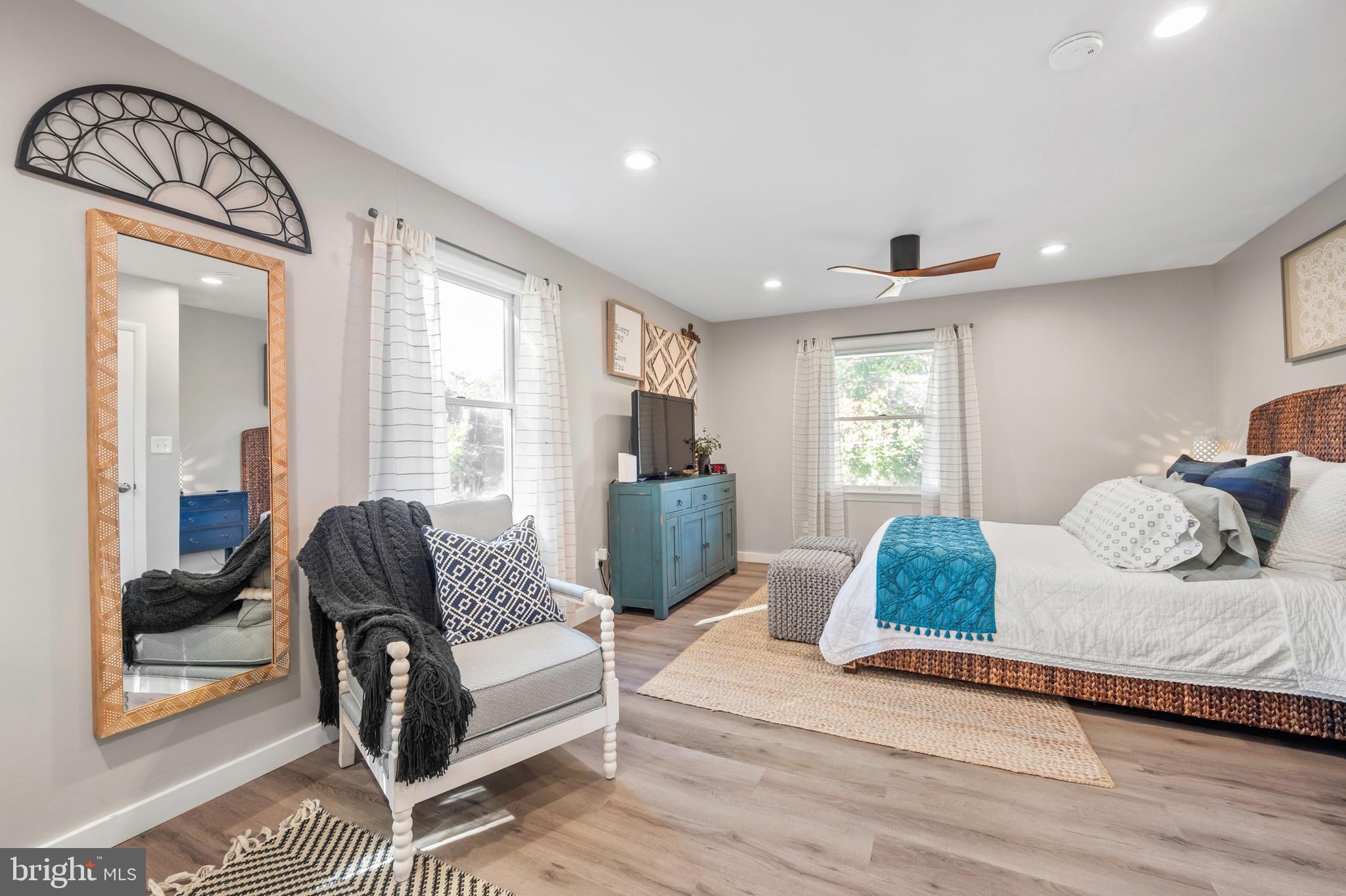 The expanded primary suite is a true retreat, boasting a spacious walk-in closet with custom built-ins as well as a second large closet and a spa-like bathroom complete with a double vanity, a shower adorned with ceramic tile, sleek glass sliding doors and separate toilet room. An additional bedroom and remodeled bath complete this level, offering flexibility and comfort for family, guests or working from home.